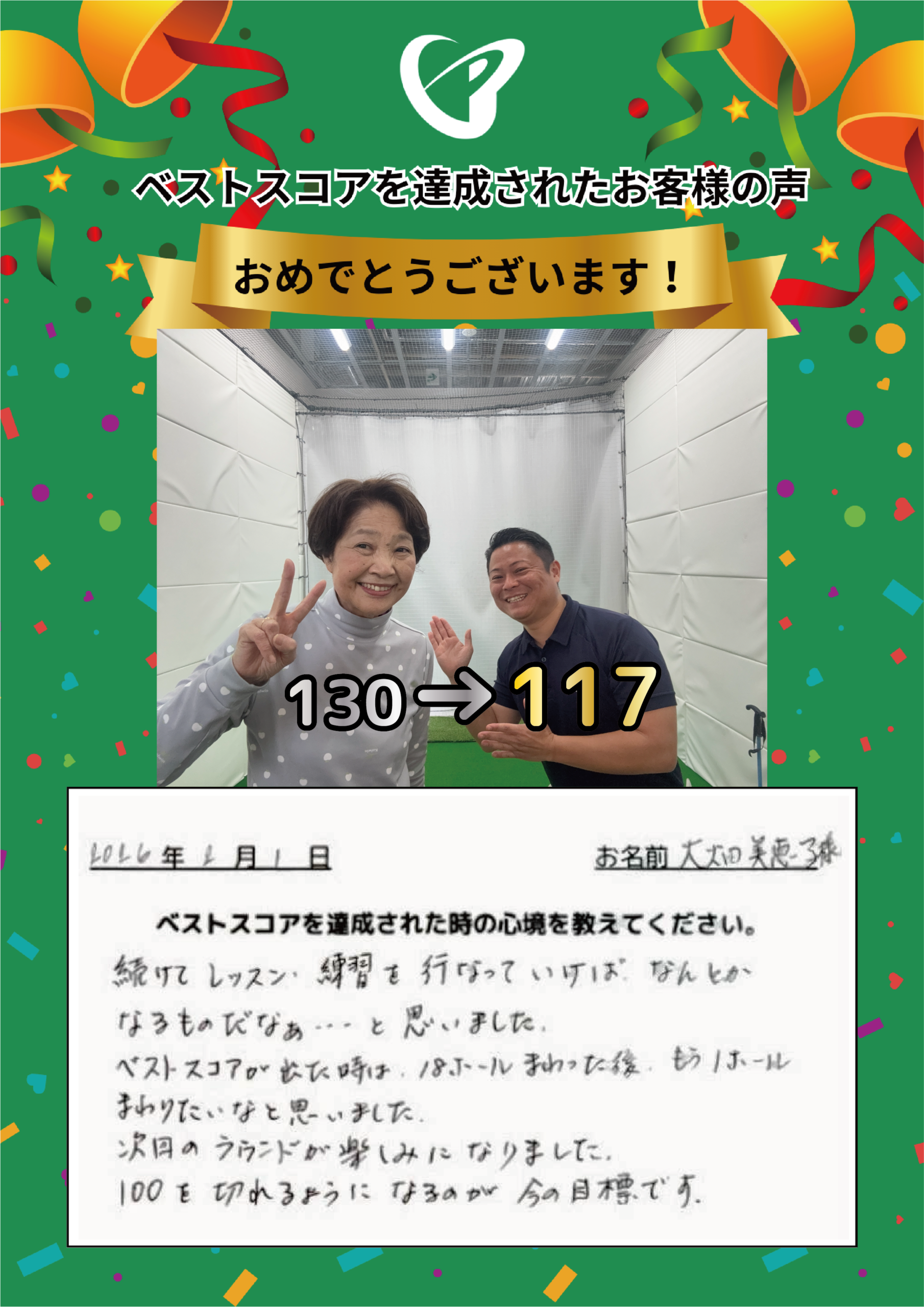 Y.O.さまベストスコア更新! 120→96