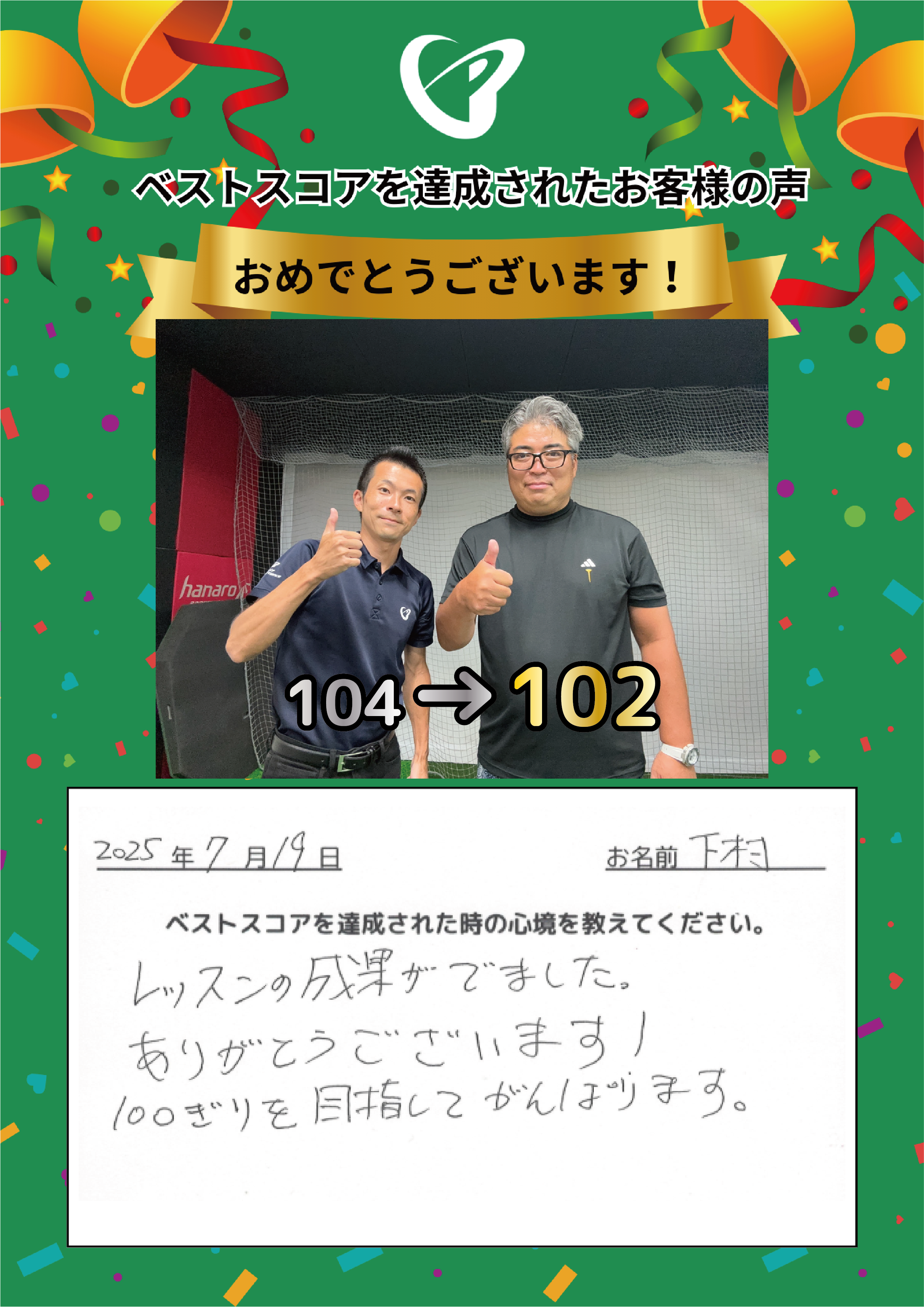 K.S.さま 達成日:7/28 入会時のベストスコ…続きを読む