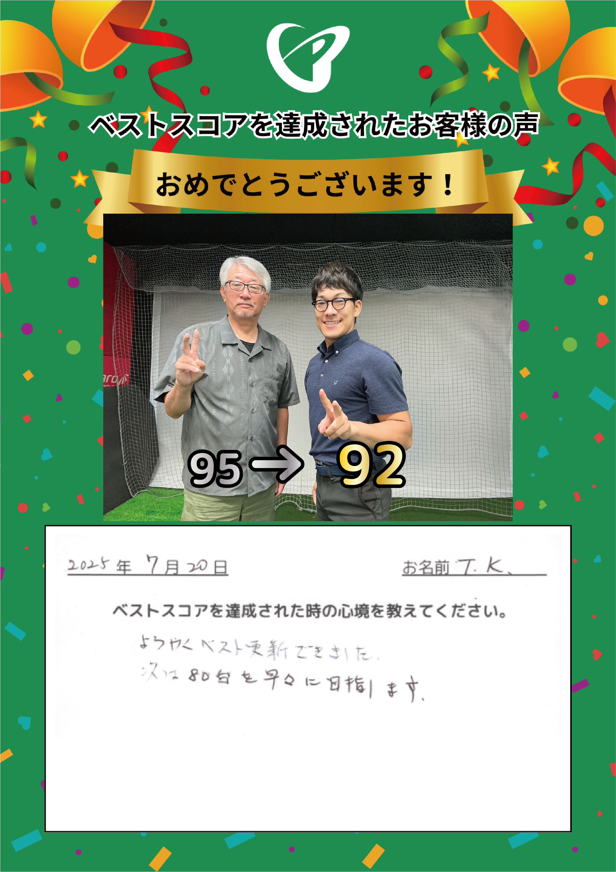 T.K.さま 達成日:7/20 入会時のベストスコ…続きを読む