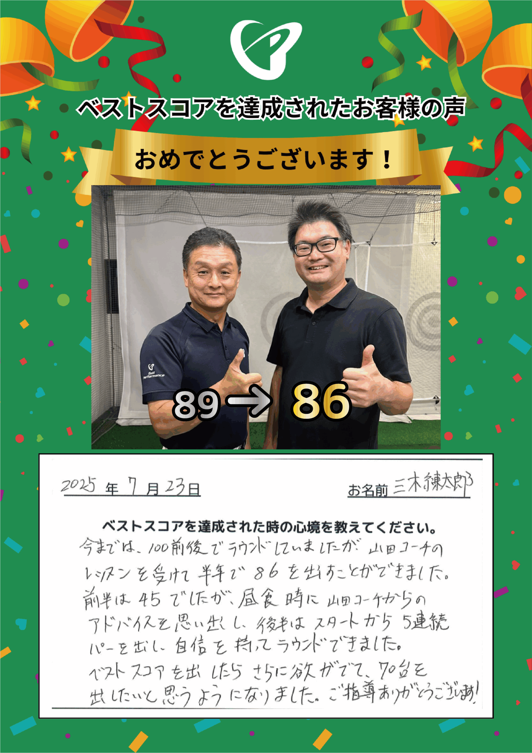 Wさま 達成日:7/25 入会時のベストスコア:1…続きを読む