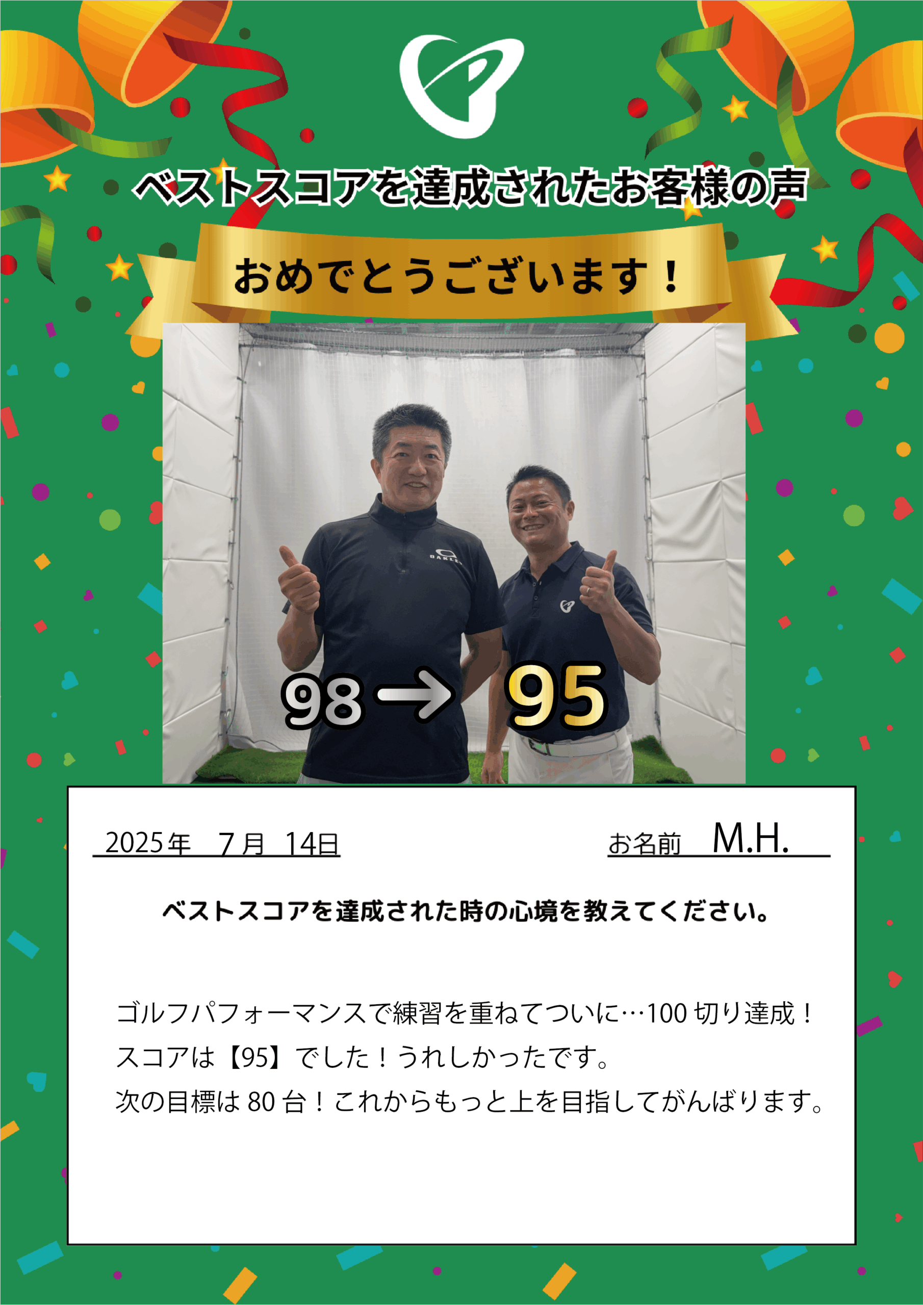 M.H.さま 達成日:7/14 入会時のベストスコ…続きを読む