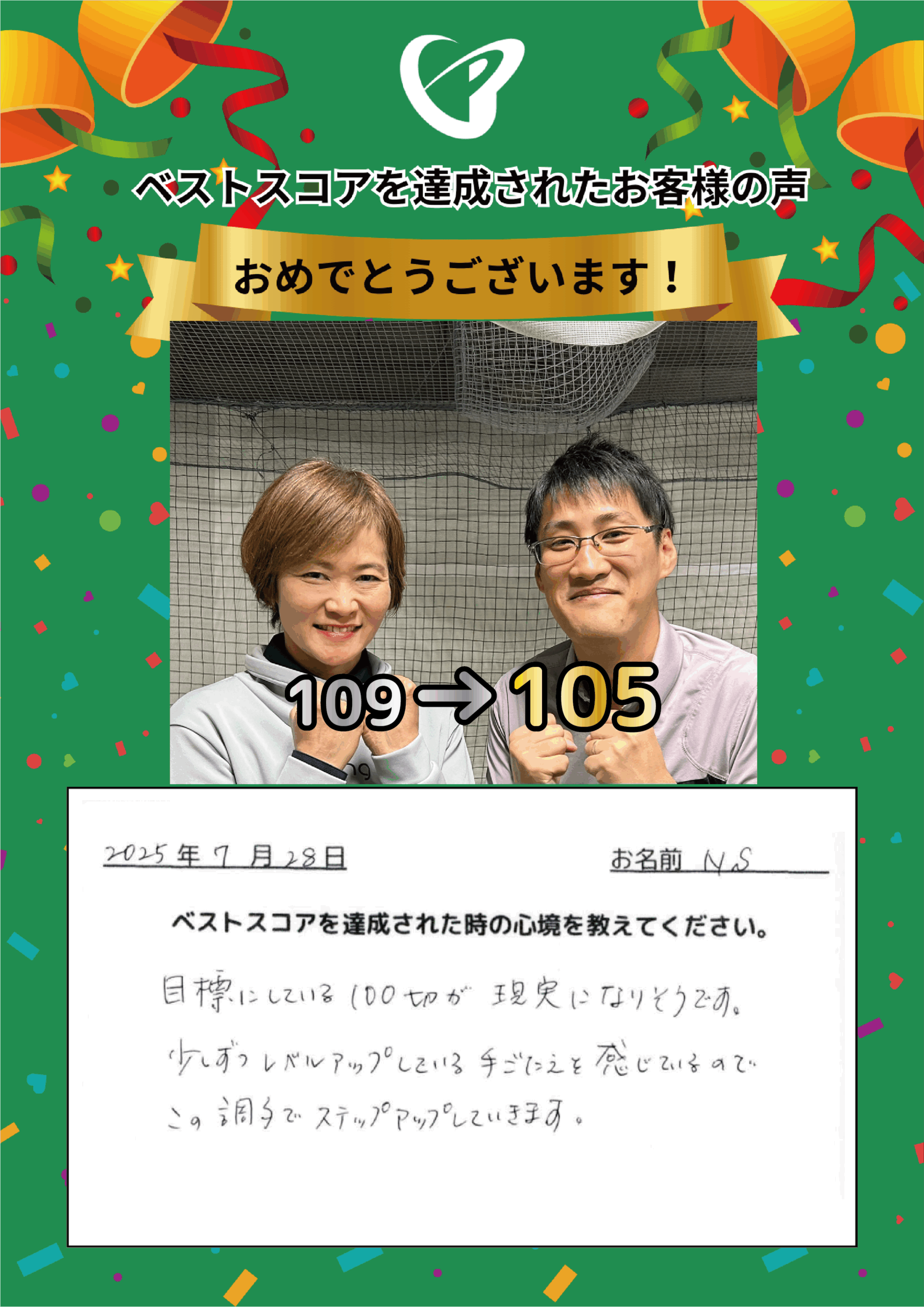 N.S.さま 達成日:7/28 入会時のベストスコ…続きを読む