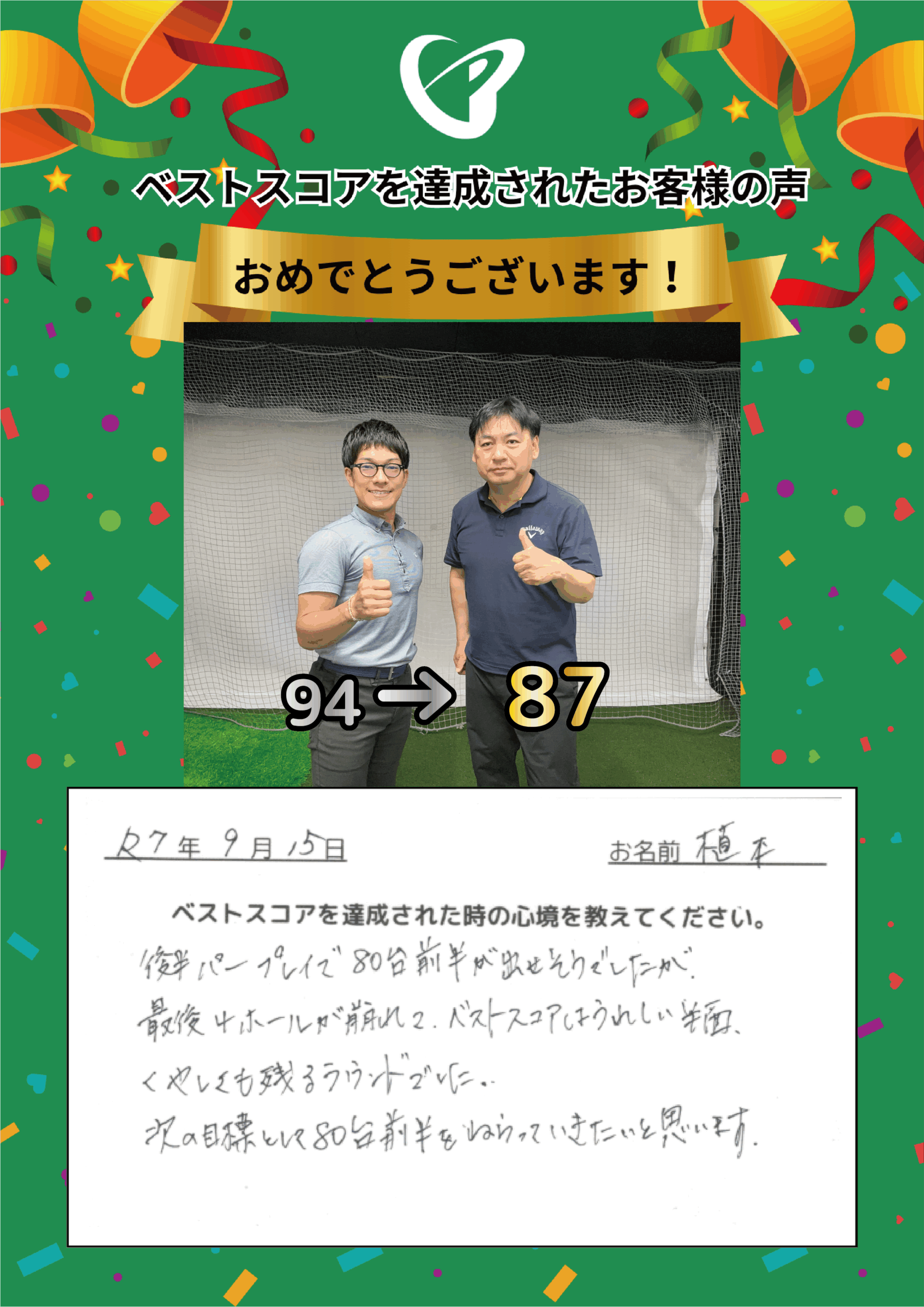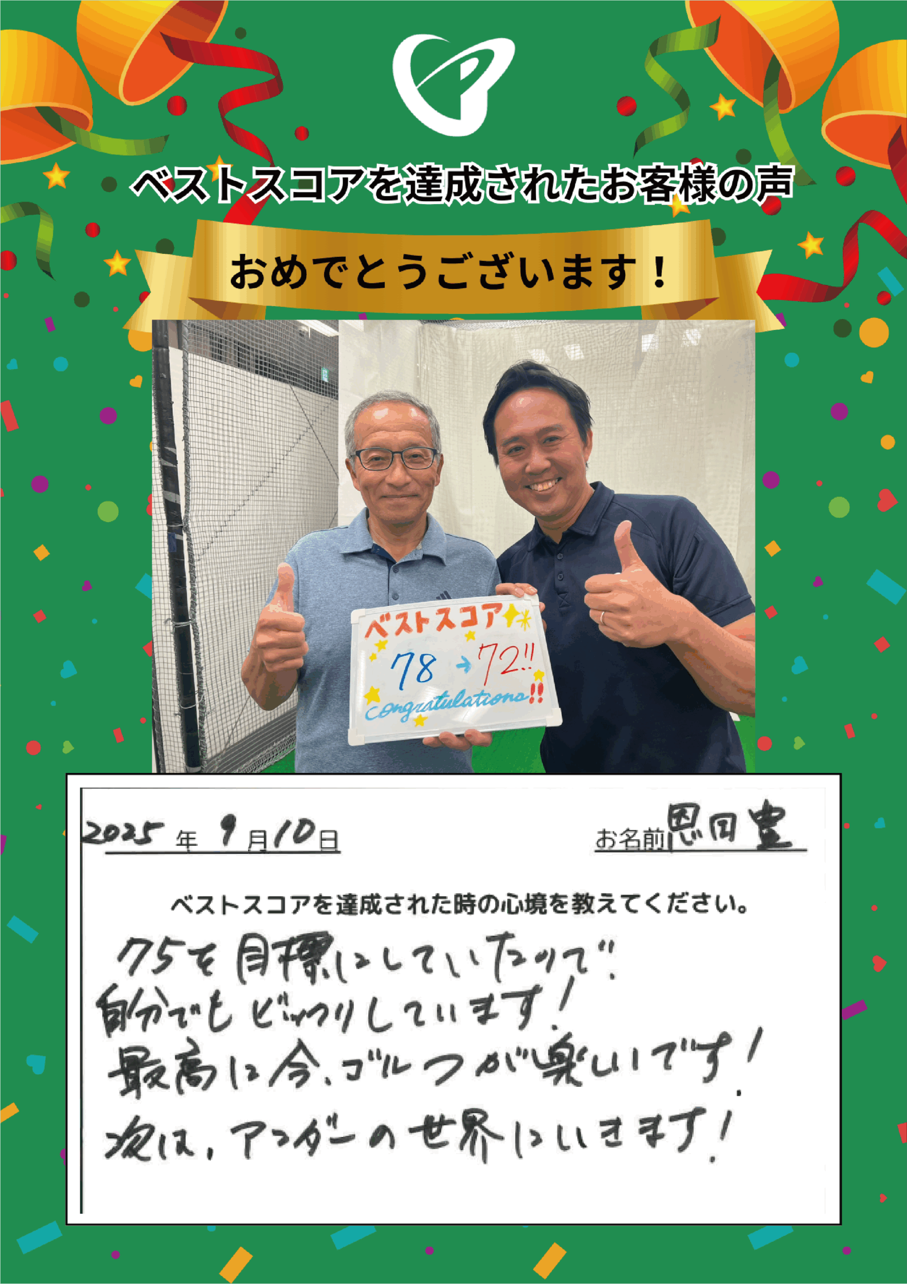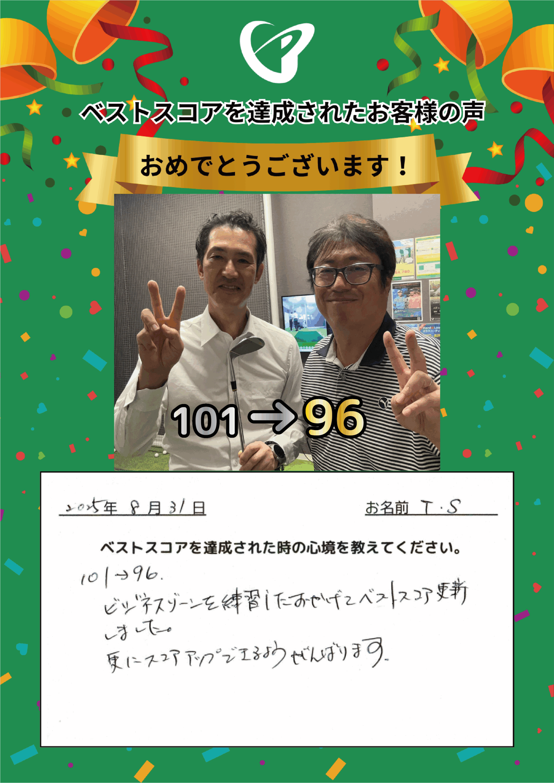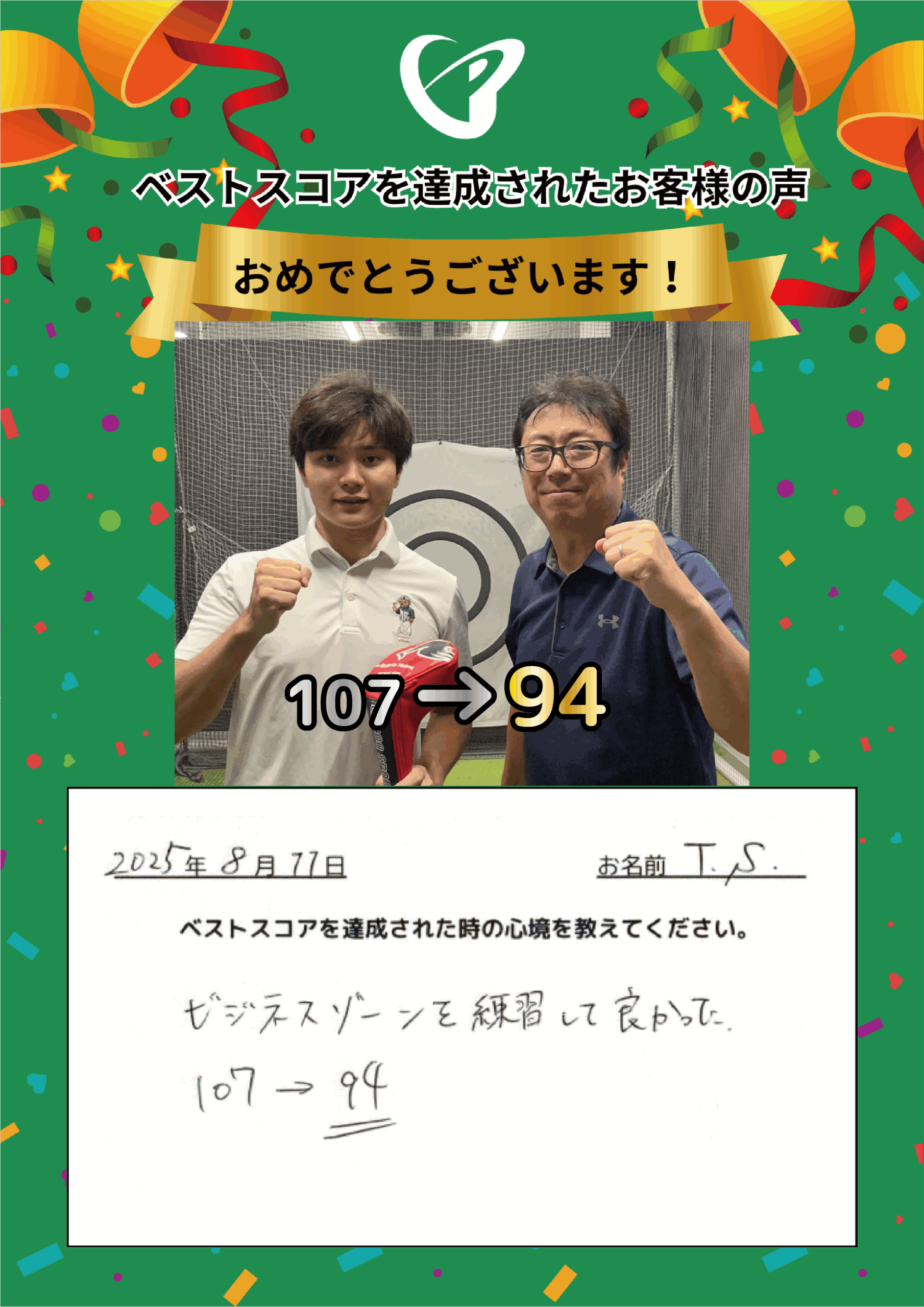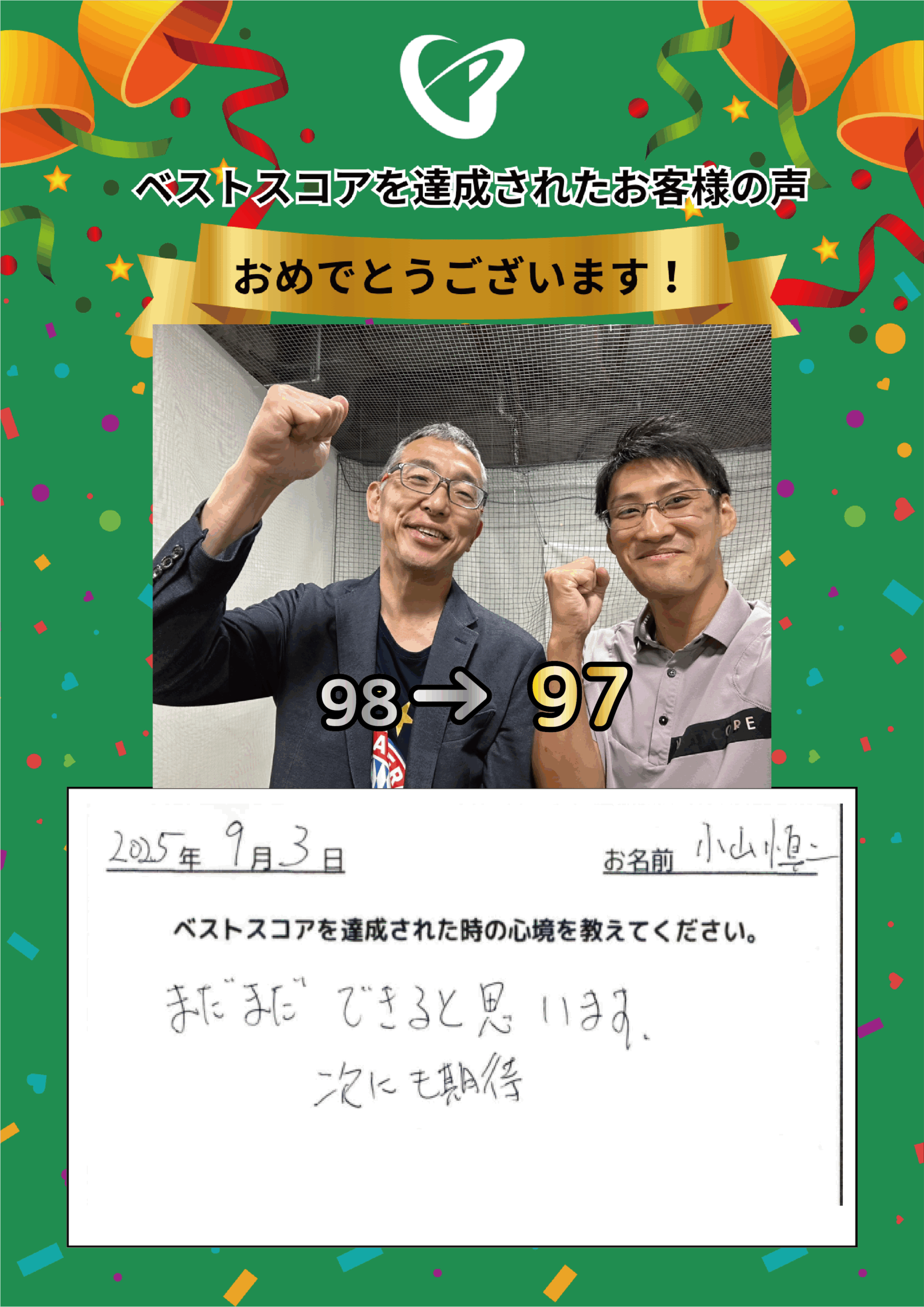 K.S.さま 達成日:9/3 入会時のベストスコア…続きを読む