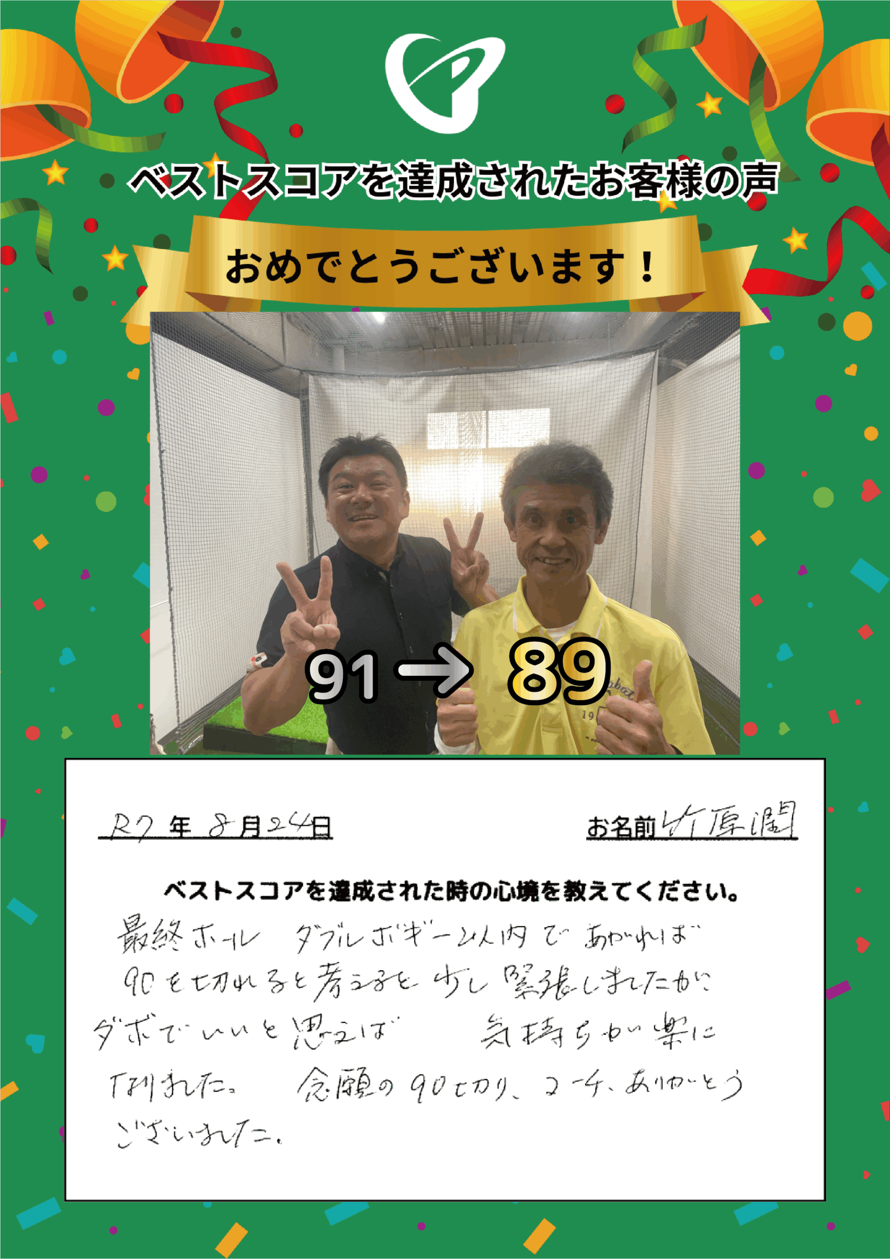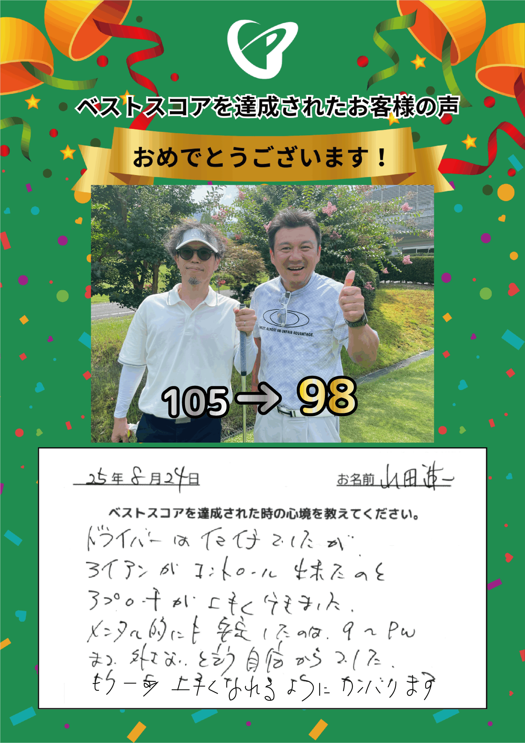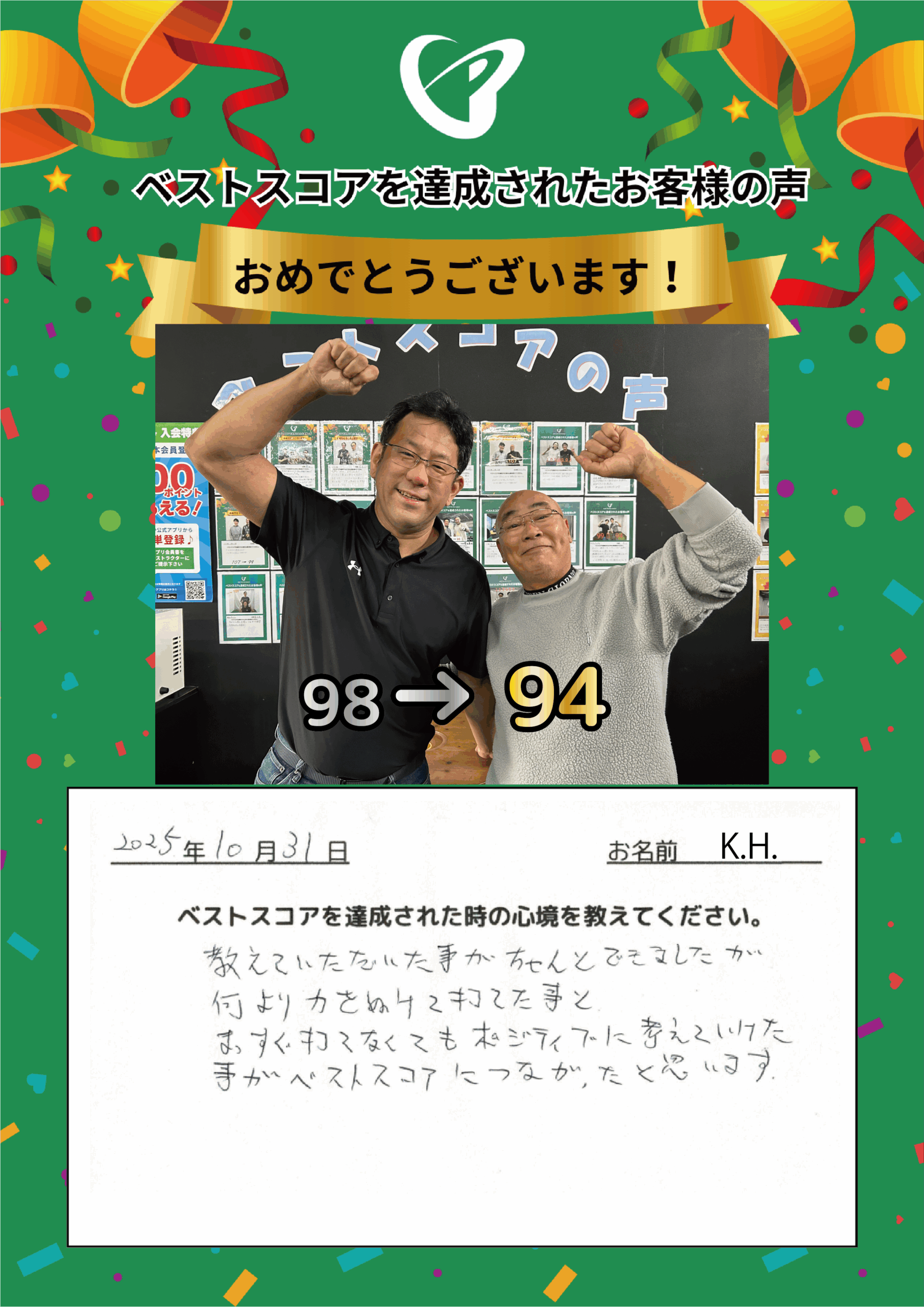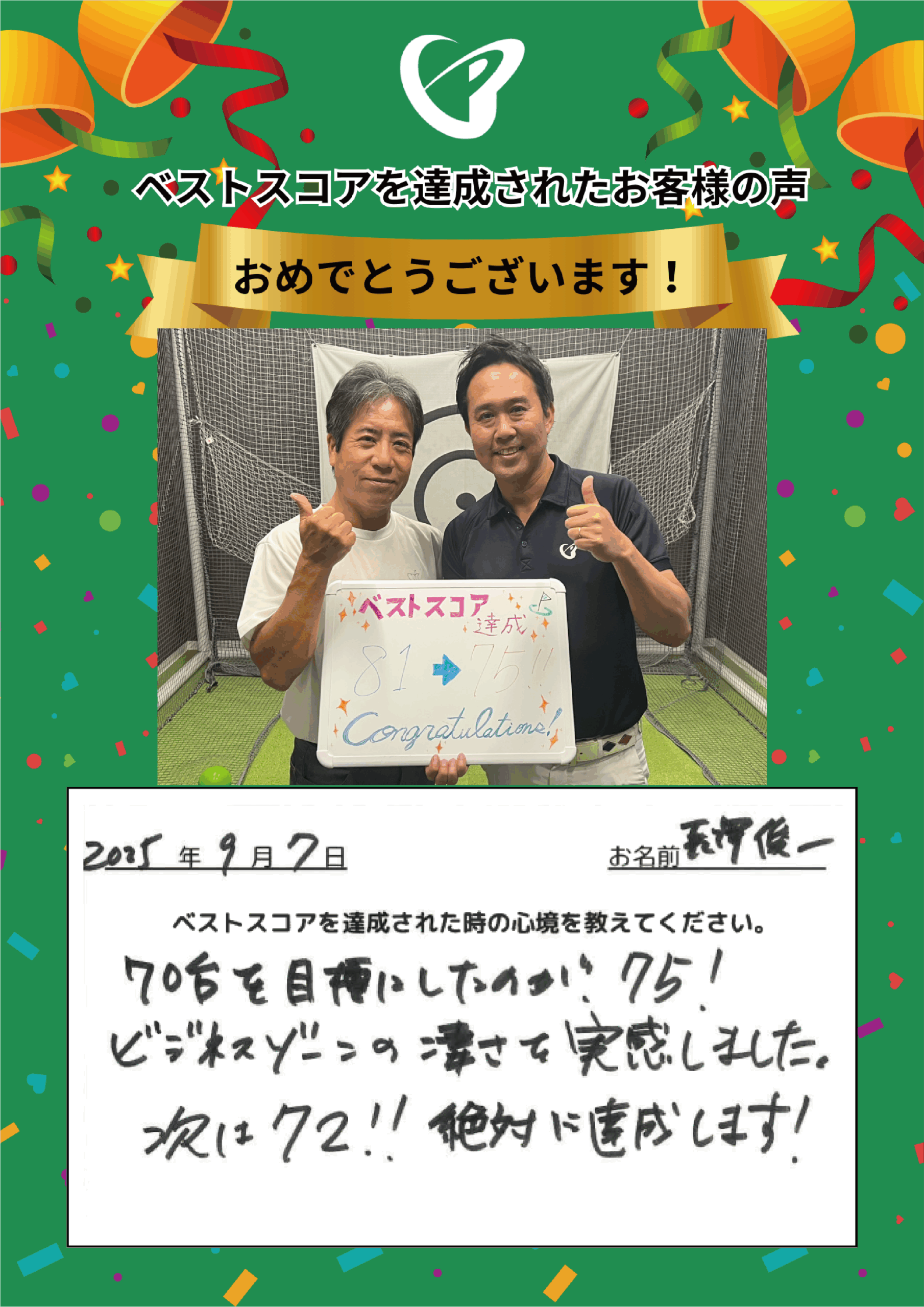 K.S.さま 達成日:9/3 入会時のベストスコア…続きを読む