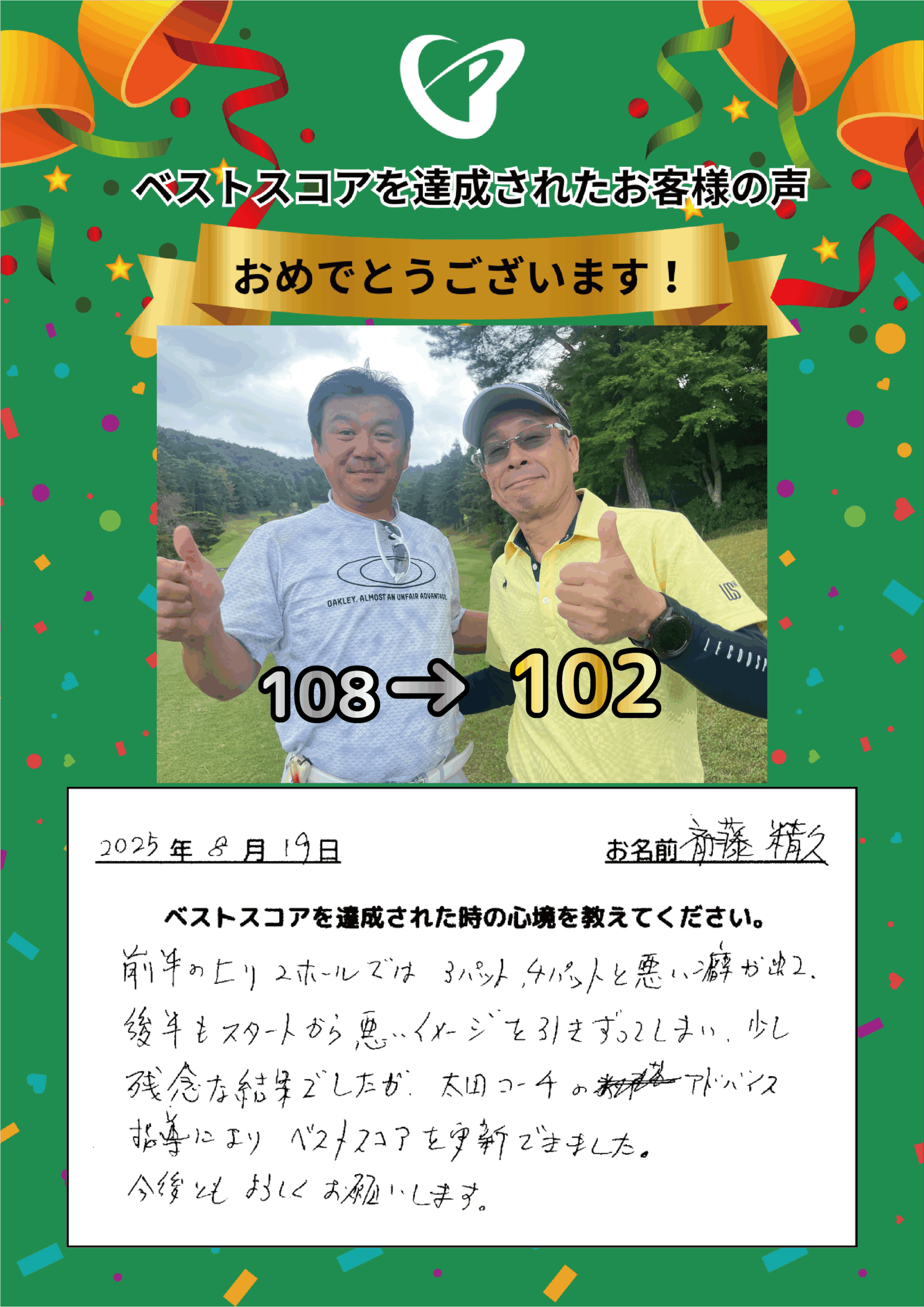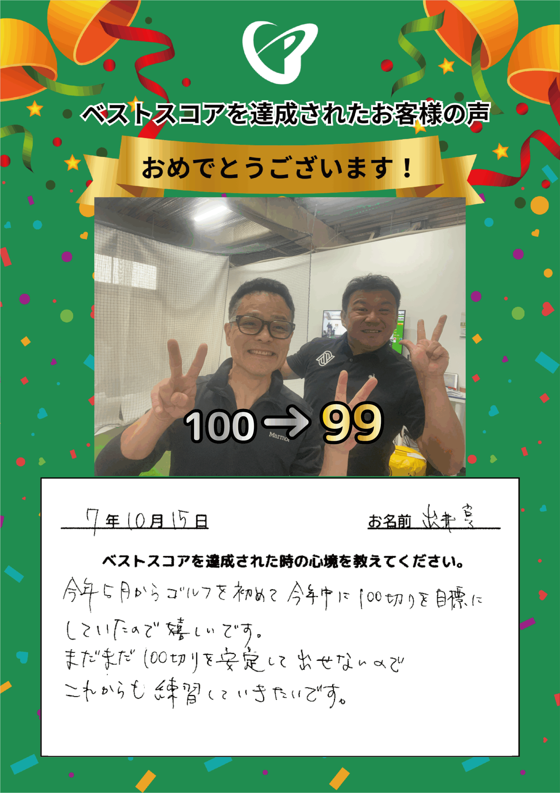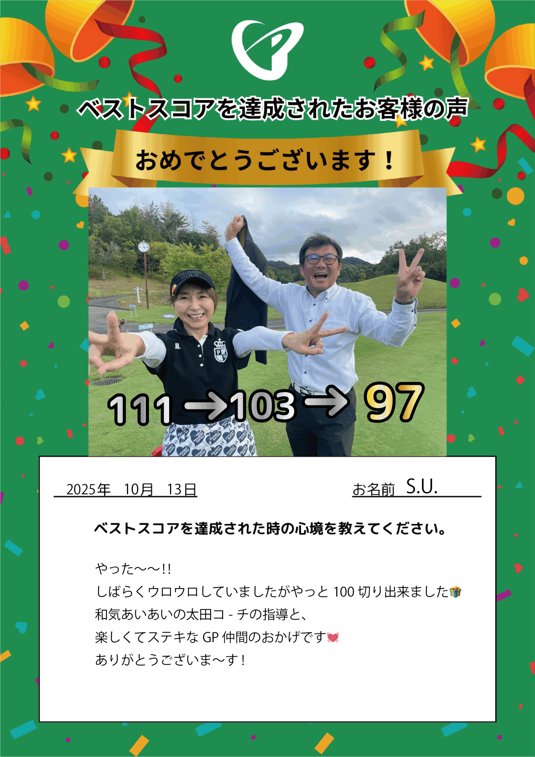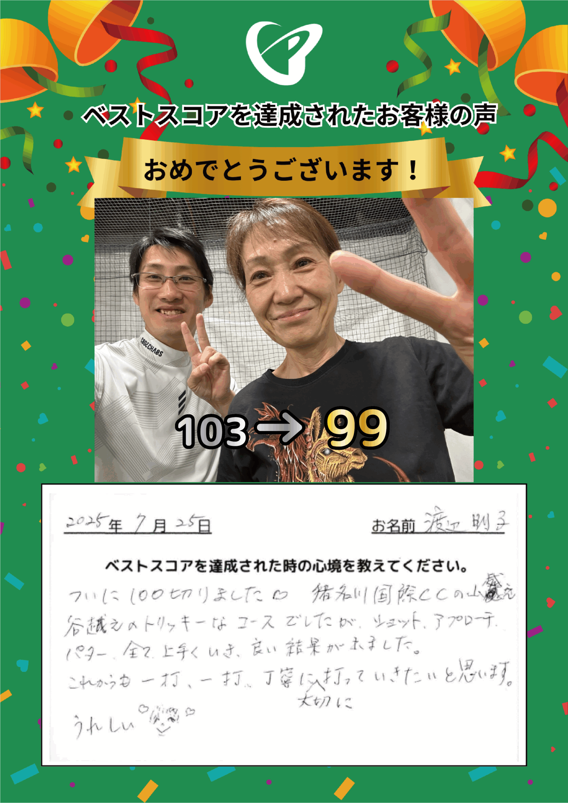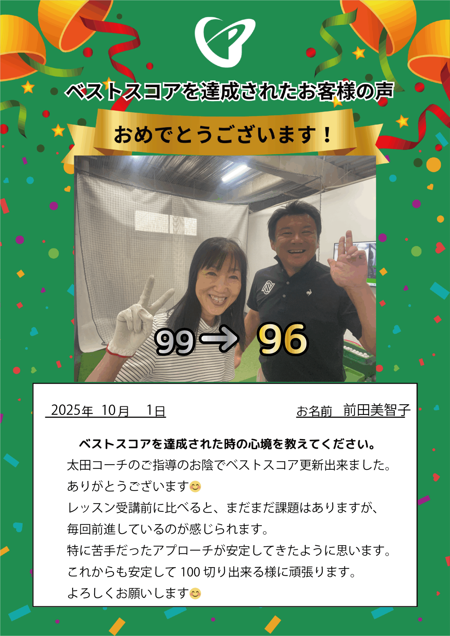 K.S.さま 達成日:9/3 入会時のベストスコア…続きを読む