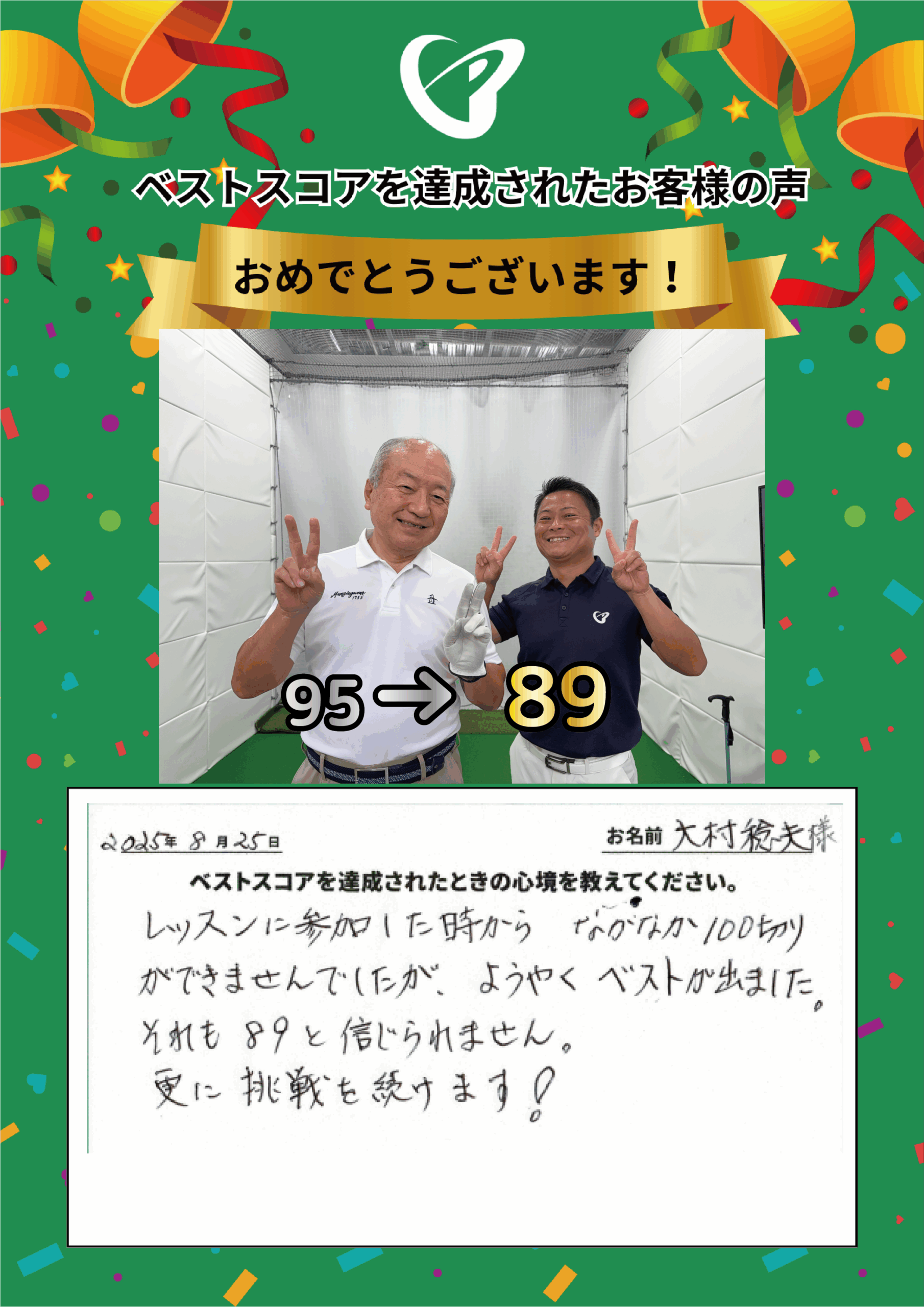 Oさま 達成日:8/25 入会時のベストスコア:9…続きを読む