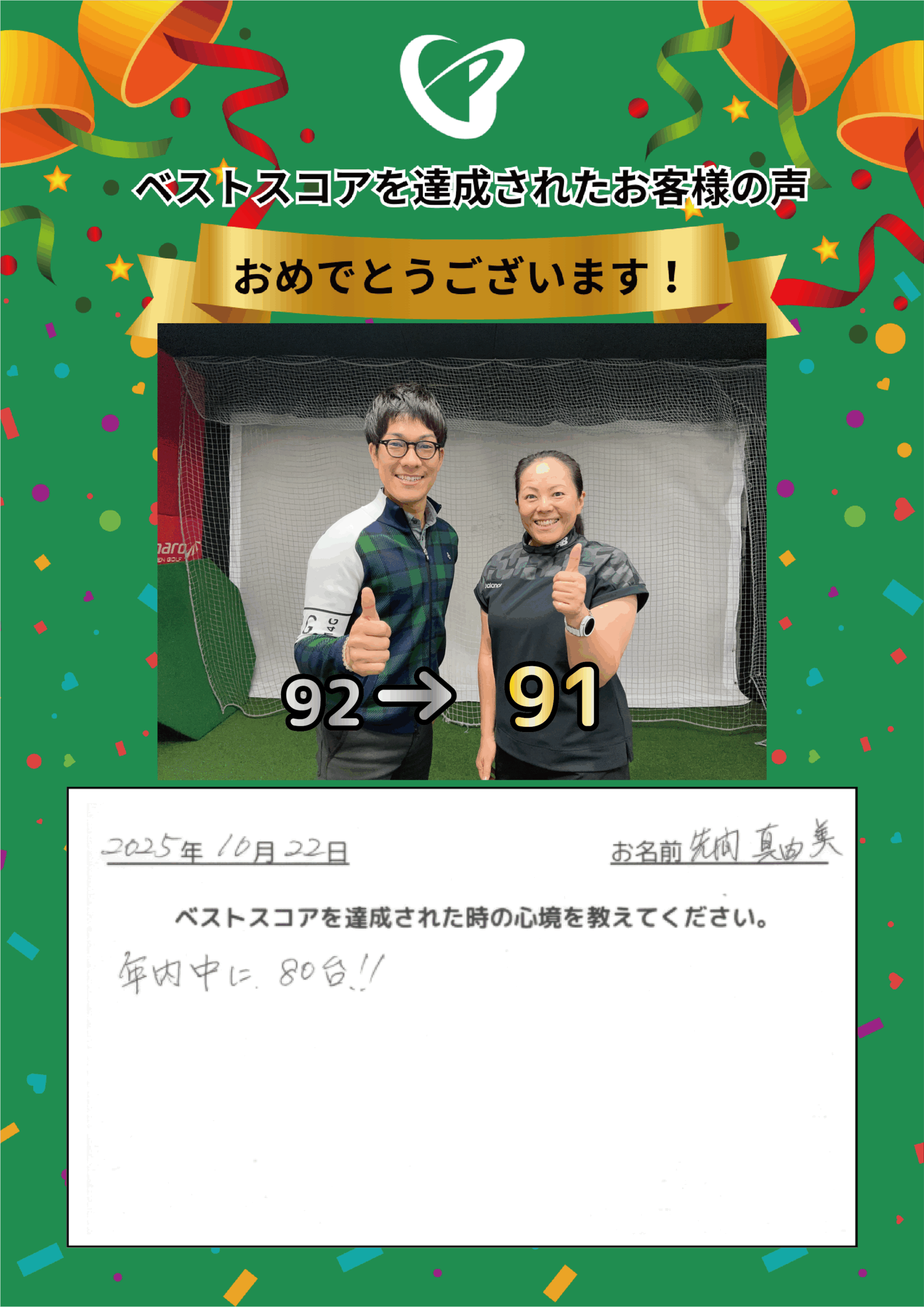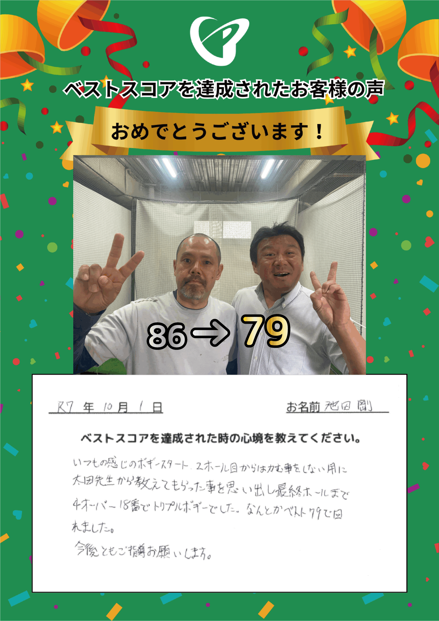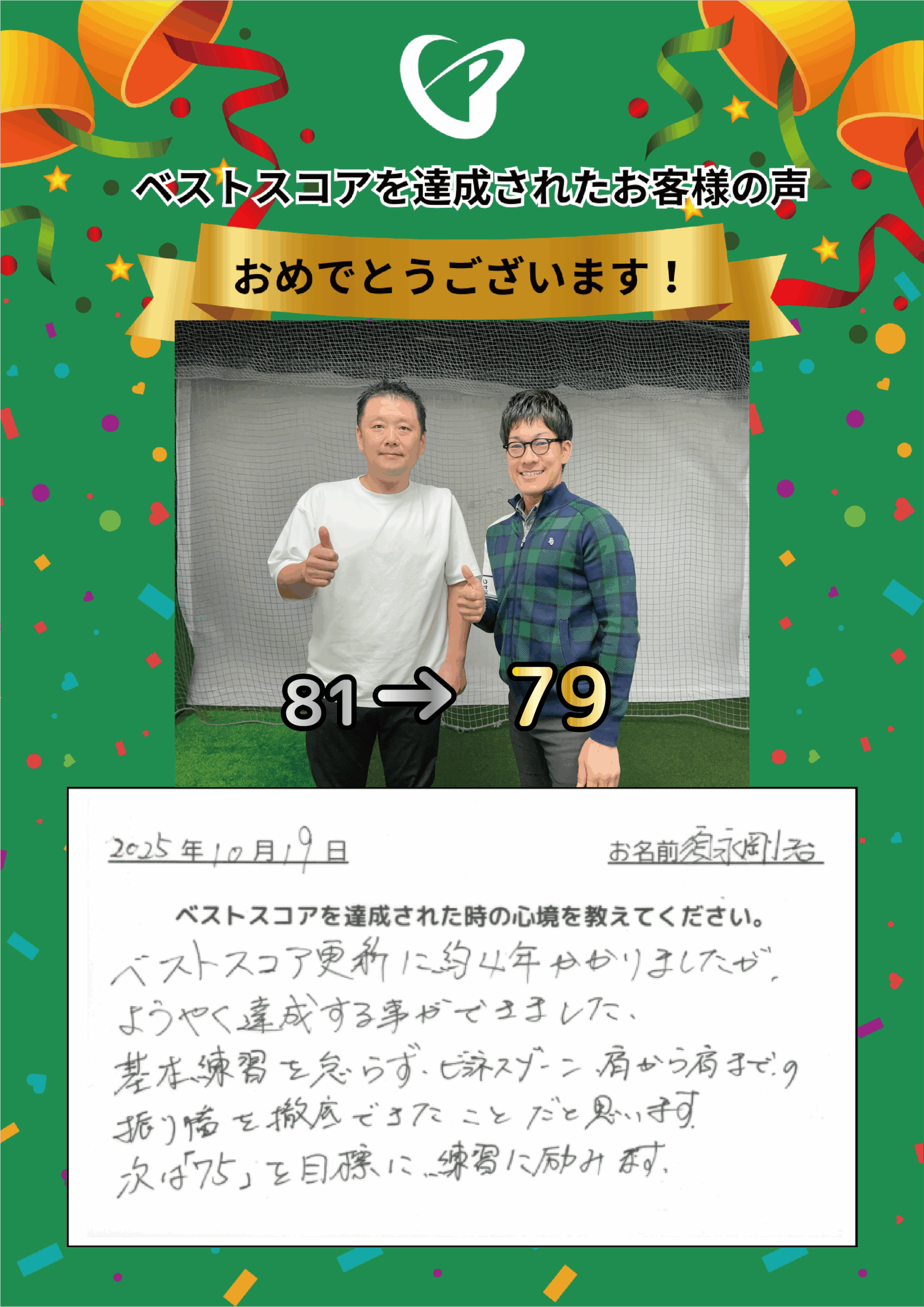 Nさま 達成日:9/7 入会時のベストスコア:81…続きを読む