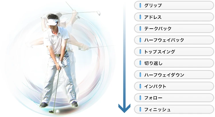 基本的にこの流れに沿って、スイングをしているのですが…この中で、『ボールを自在に操れる人』に共通する部分を考えてください。人によって動きが変わらない部分はどこでしょうか?
