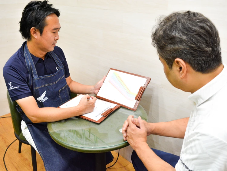 あなたが特に悩んでいる箇所、どんなクラブセッティング、結果を望んでいるのかによって、フィッティングの方向性も変わってきますので、まずはご要望も含めて伺わせていただきます。