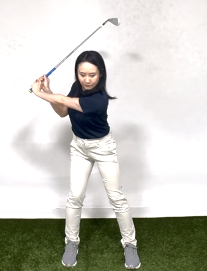 肩を90度回してトップを作ることで、クラブヘッドの位置が安定し、インサイドから下ろす正しい軌道を作ることができます。