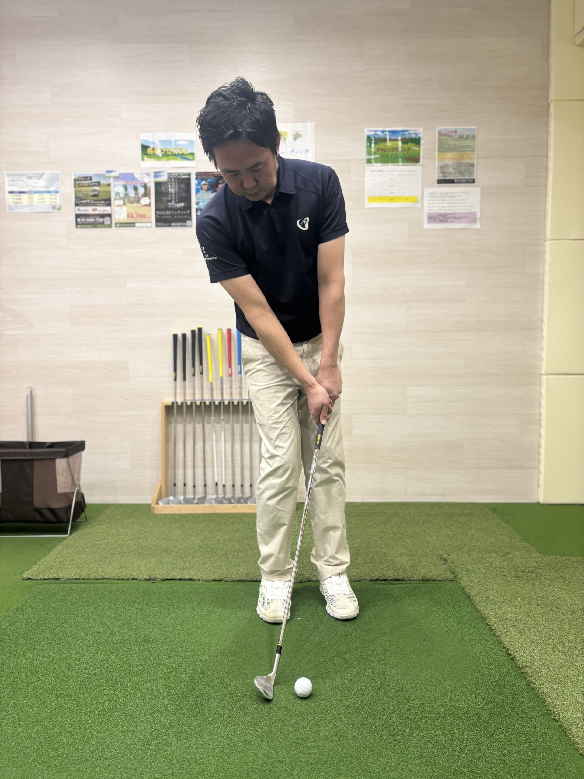 通常のピッチショットではボール位置真ん中ですが