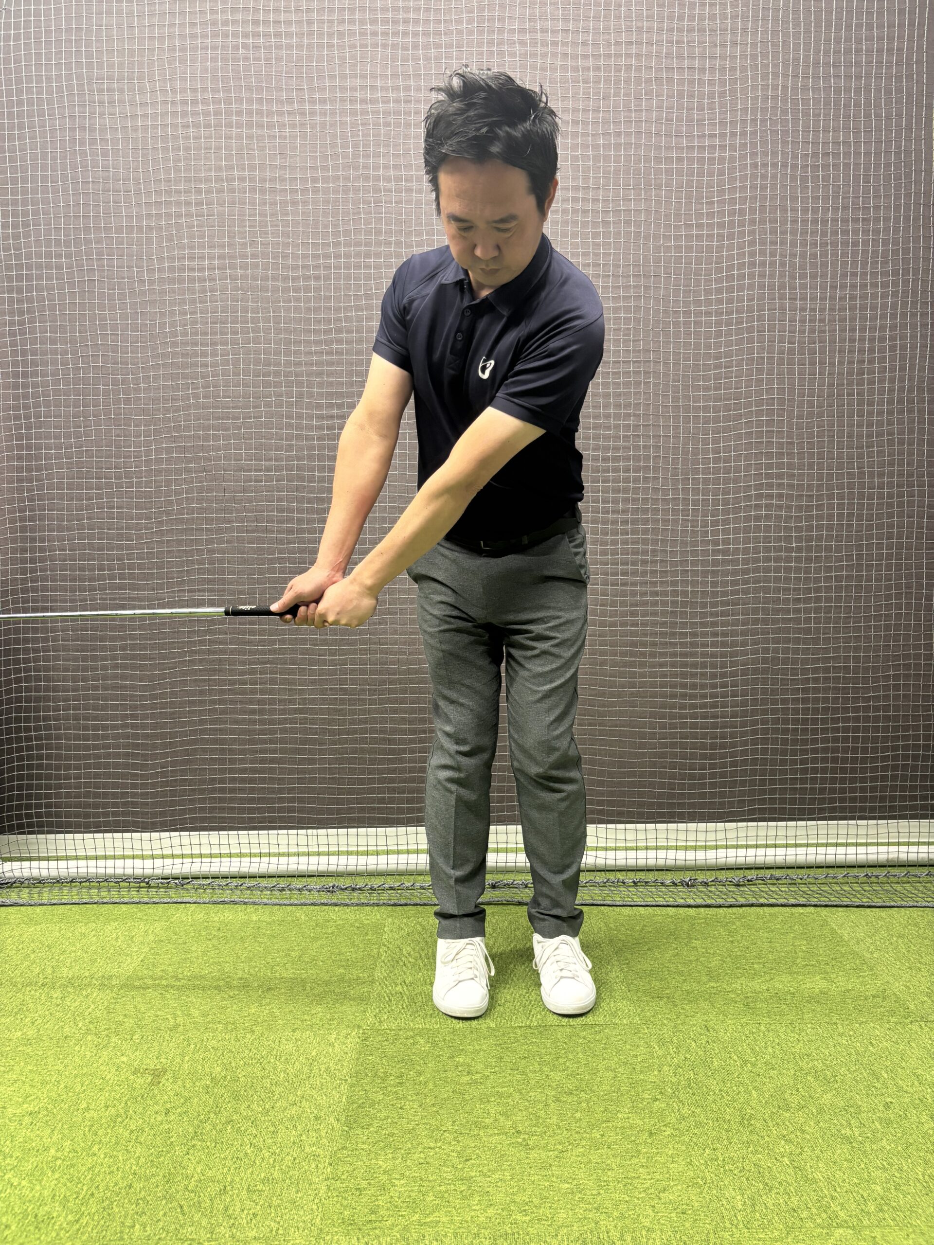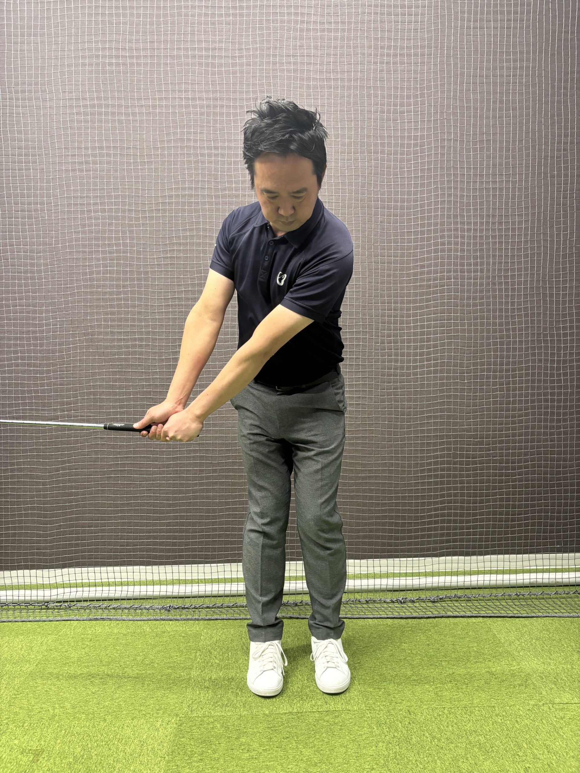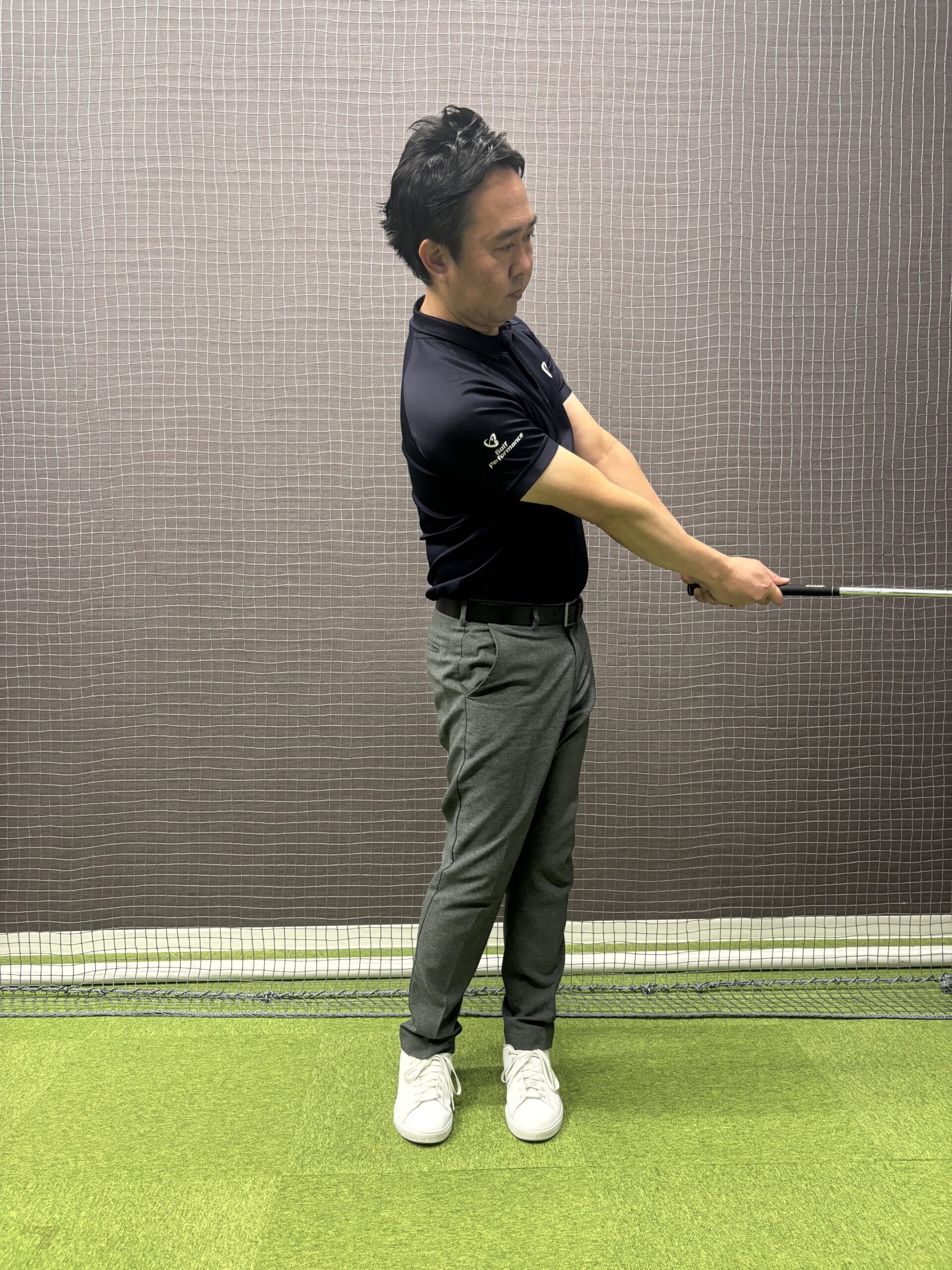 初心者はバックスイングが大きくなりすぎたり、フォローが小さくなったりしがちですが、これでは距離感は安定しません。