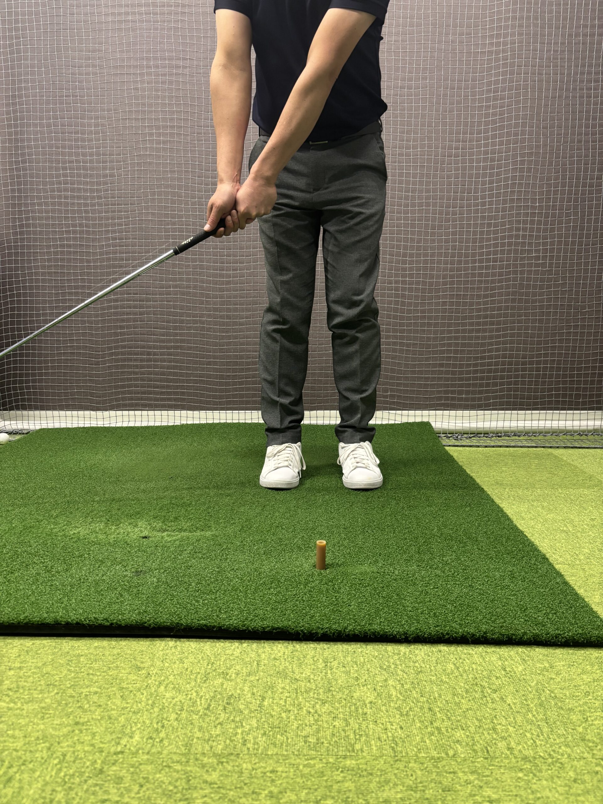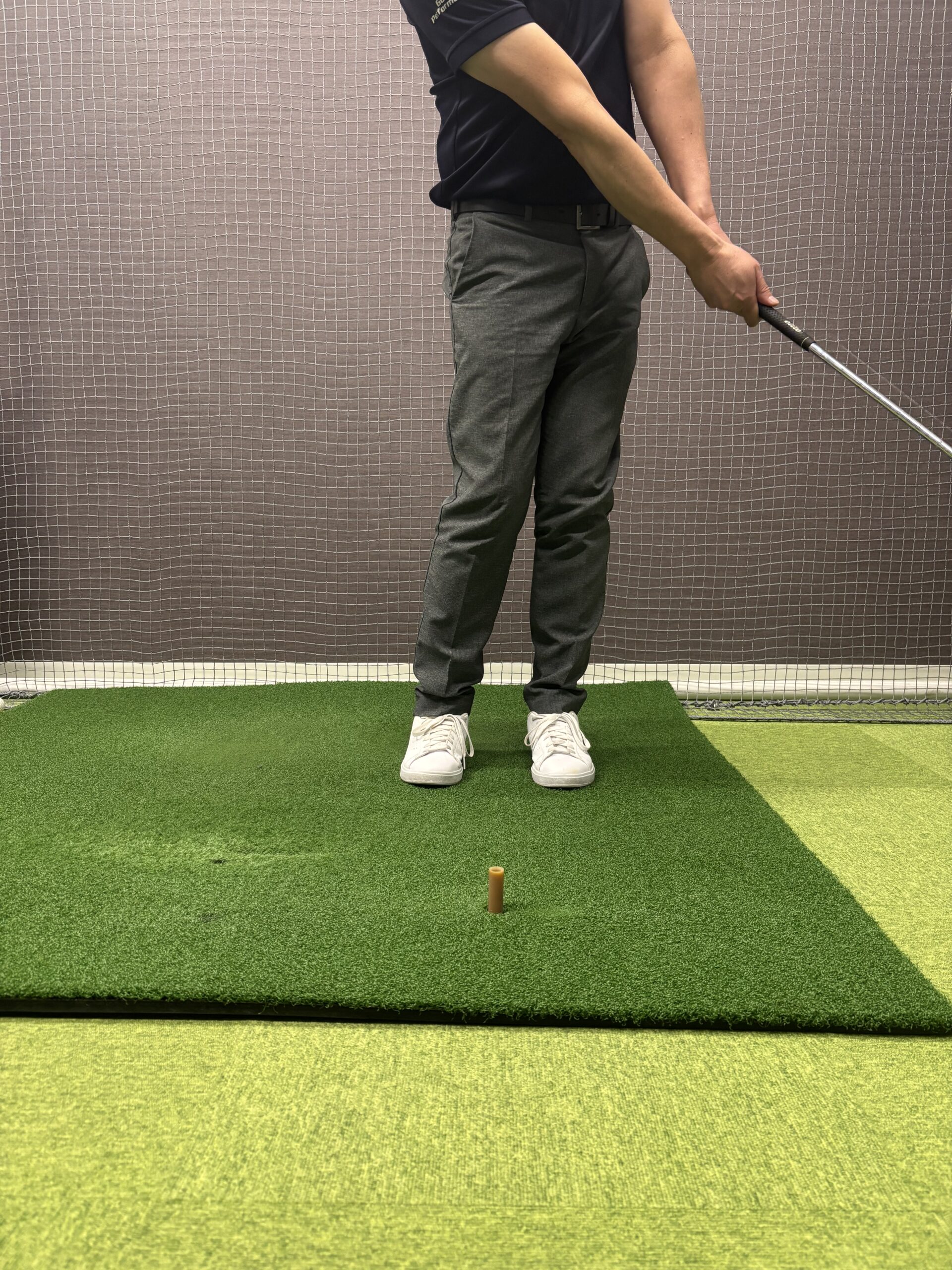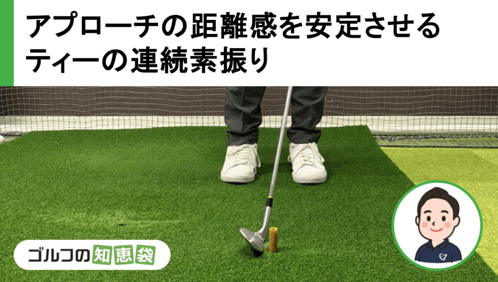 ティーを地面に置き、連続素振りでティーを打ちます。