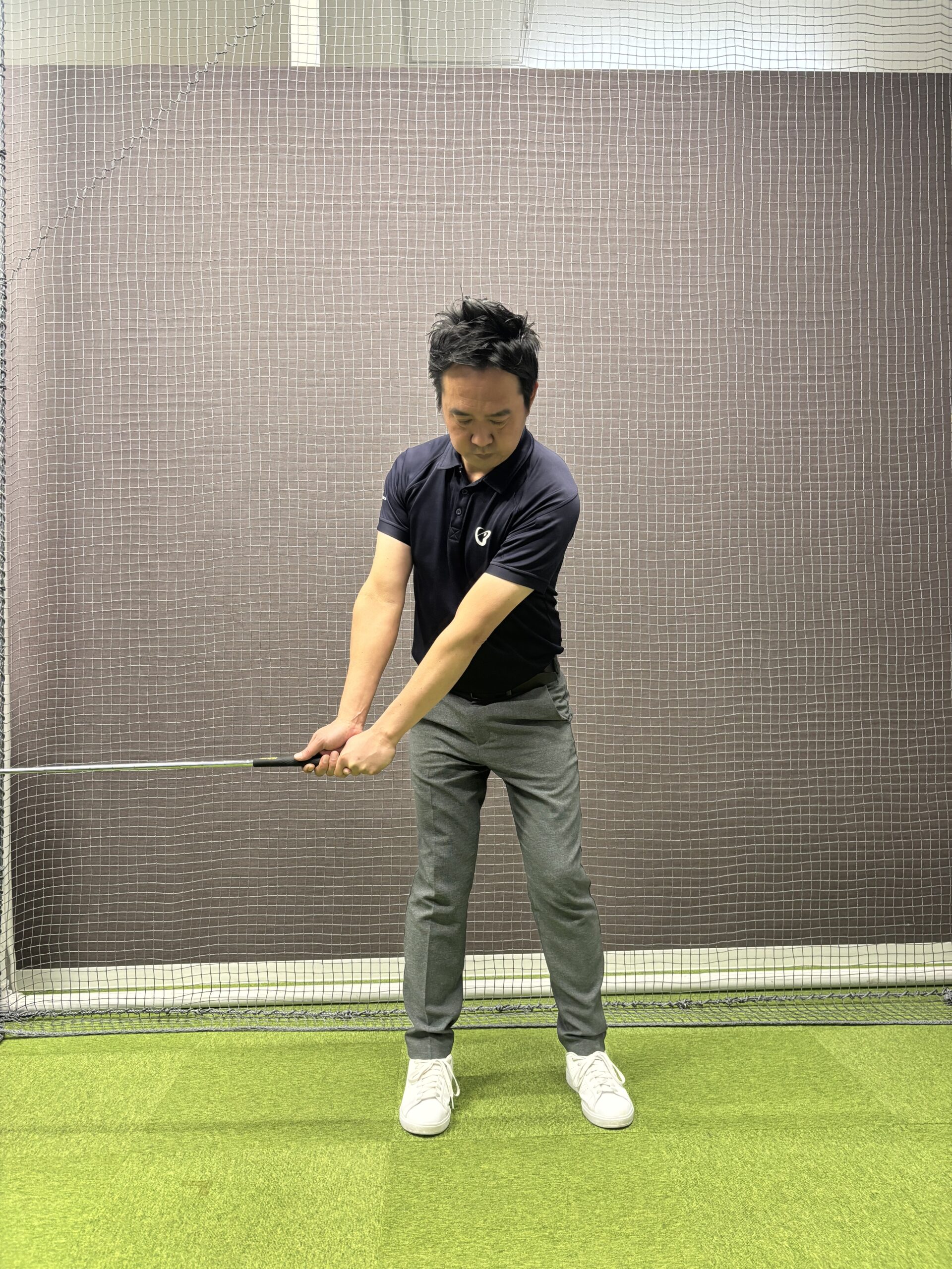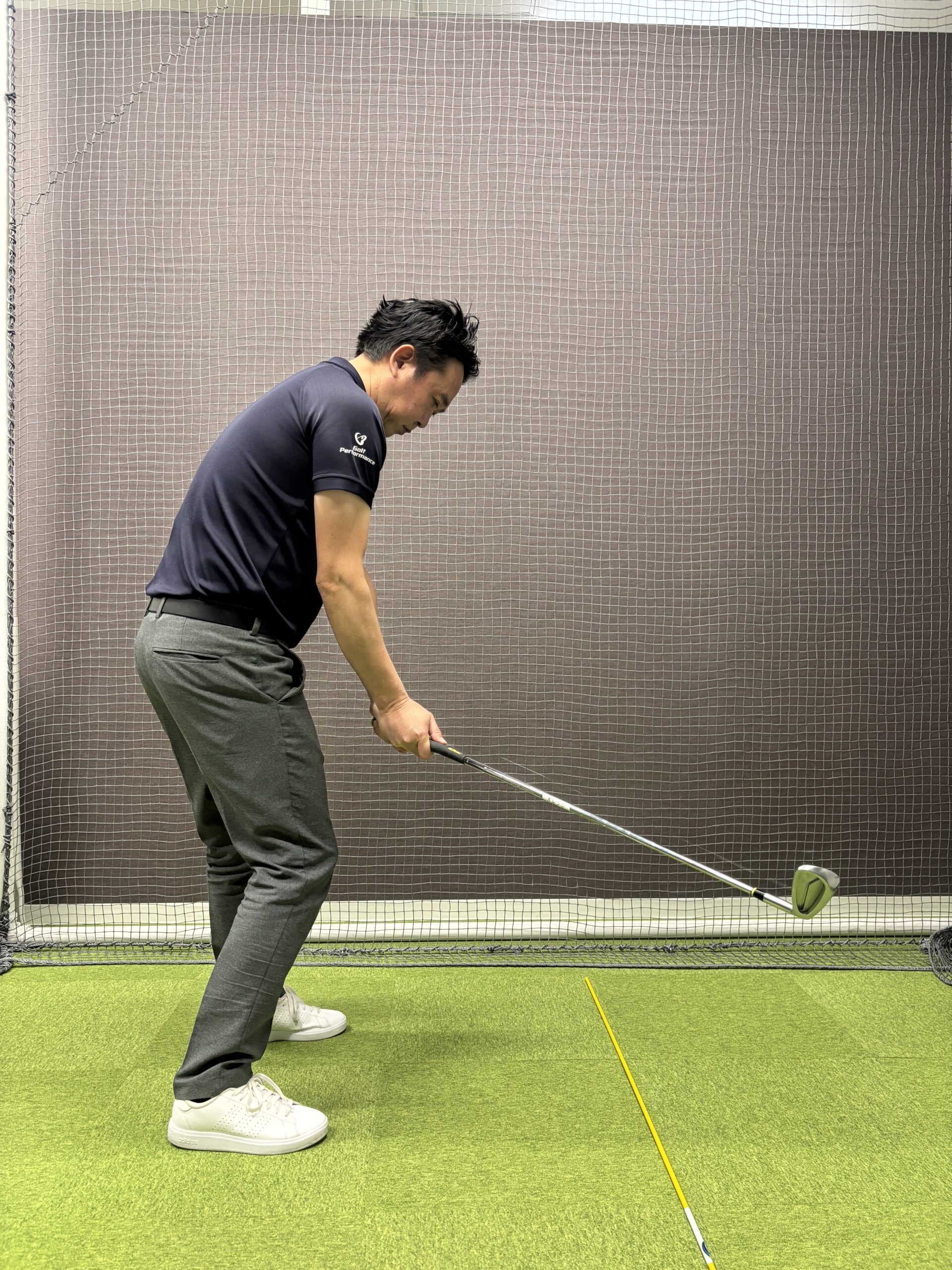 初心者はフルスイングばかり練習しがちですが、まずはビジネスゾーンで同調スイングを身につけることが重要です。