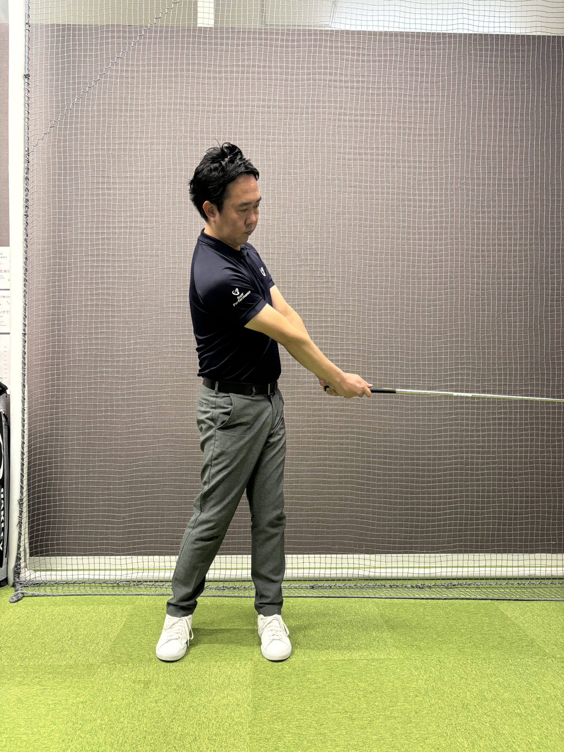 初心者のスライスの最大の原因は、体と腕がバラバラに動いてしまうことです。