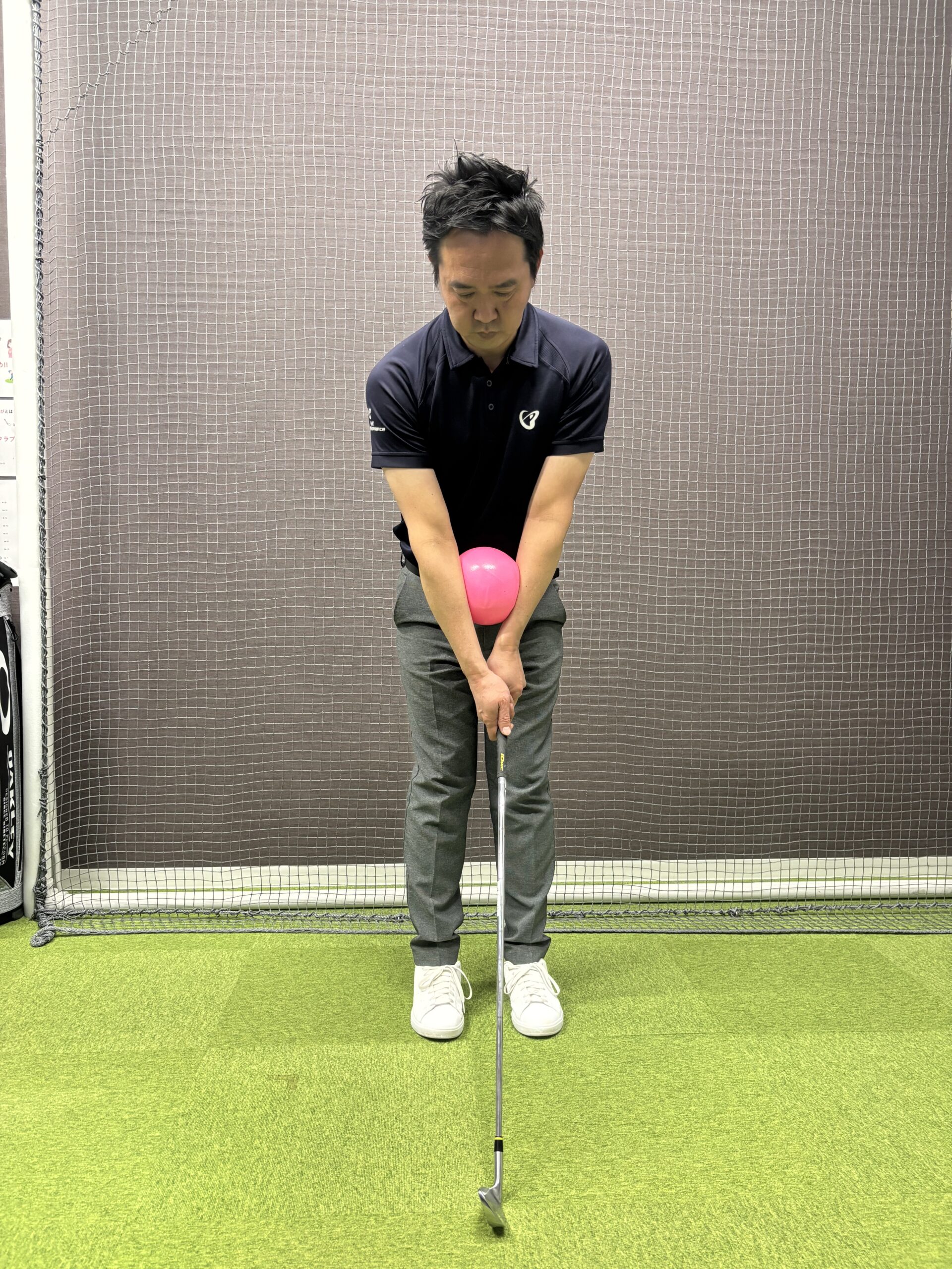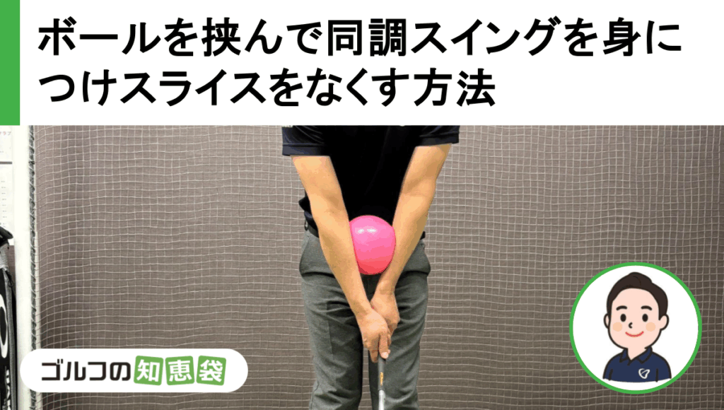 初心者がスライスをなくすために最も効果的な練習方法が、ボールを挟んで行う同調練習です。