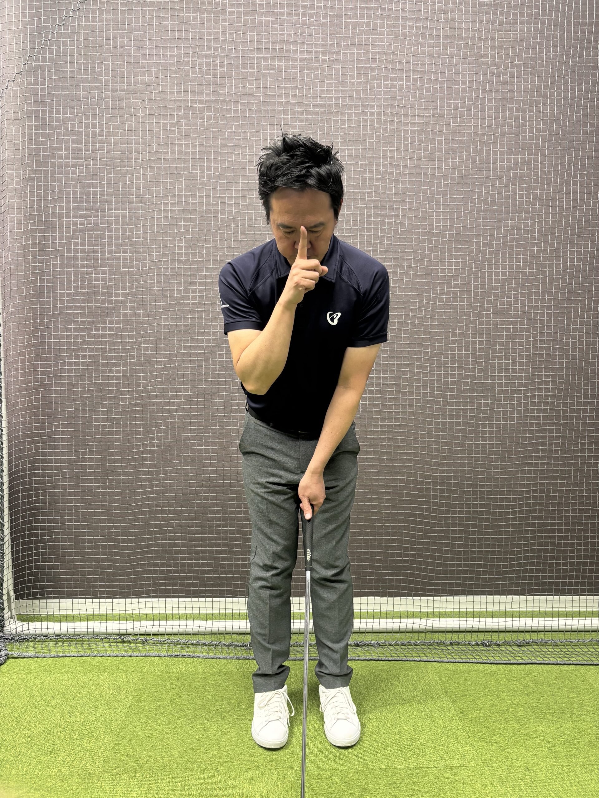 ② 鼻筋固定素振り