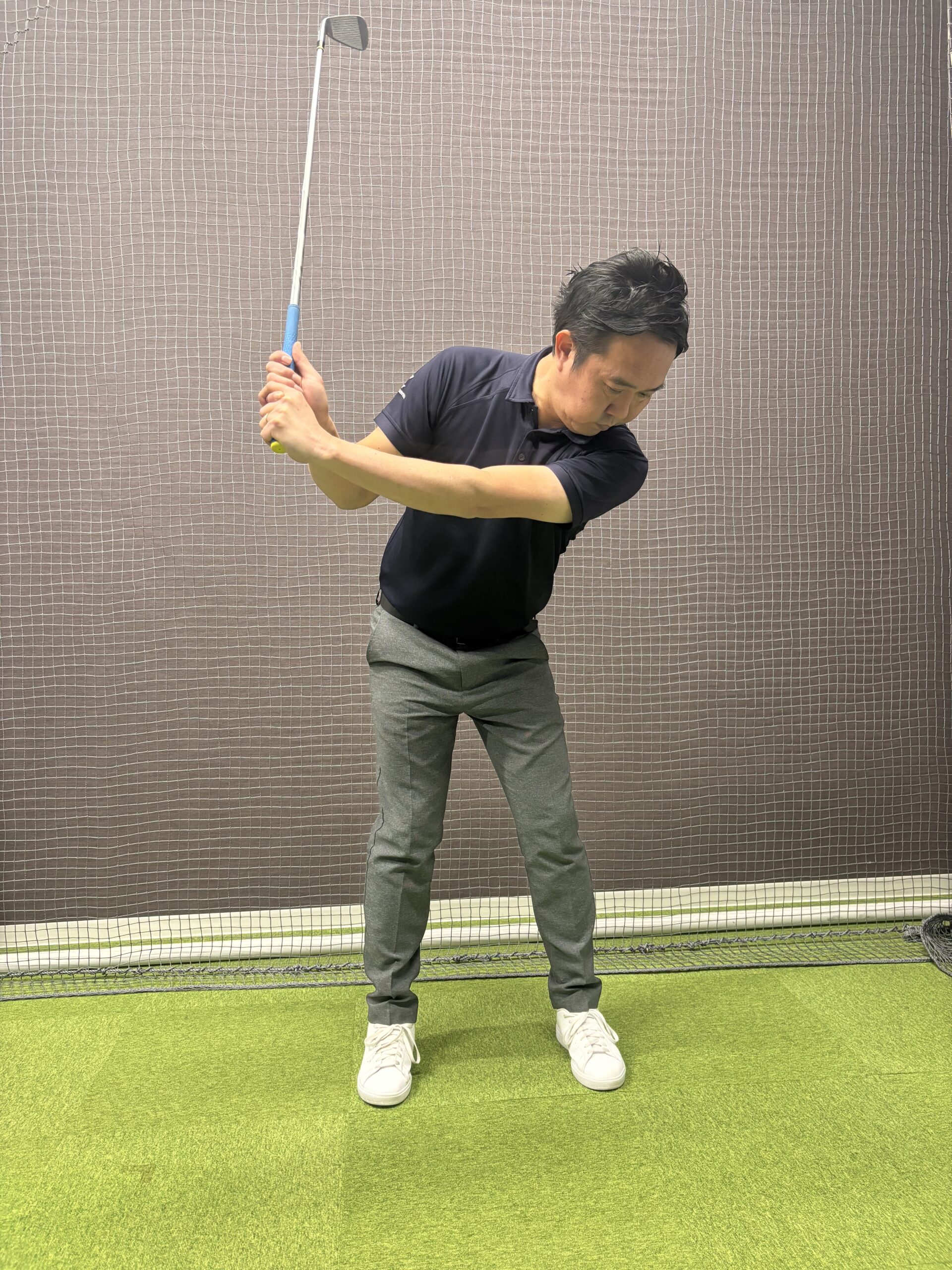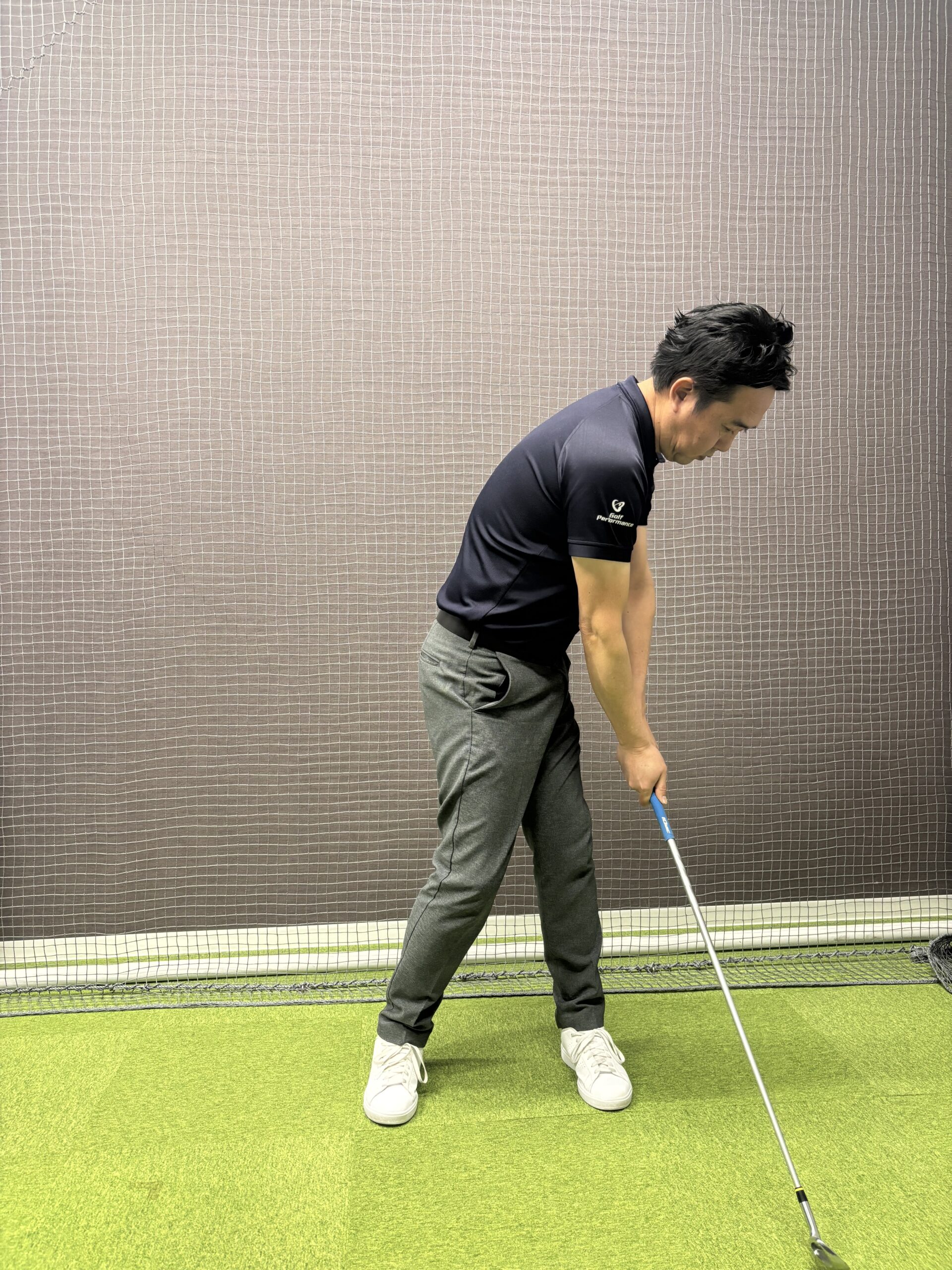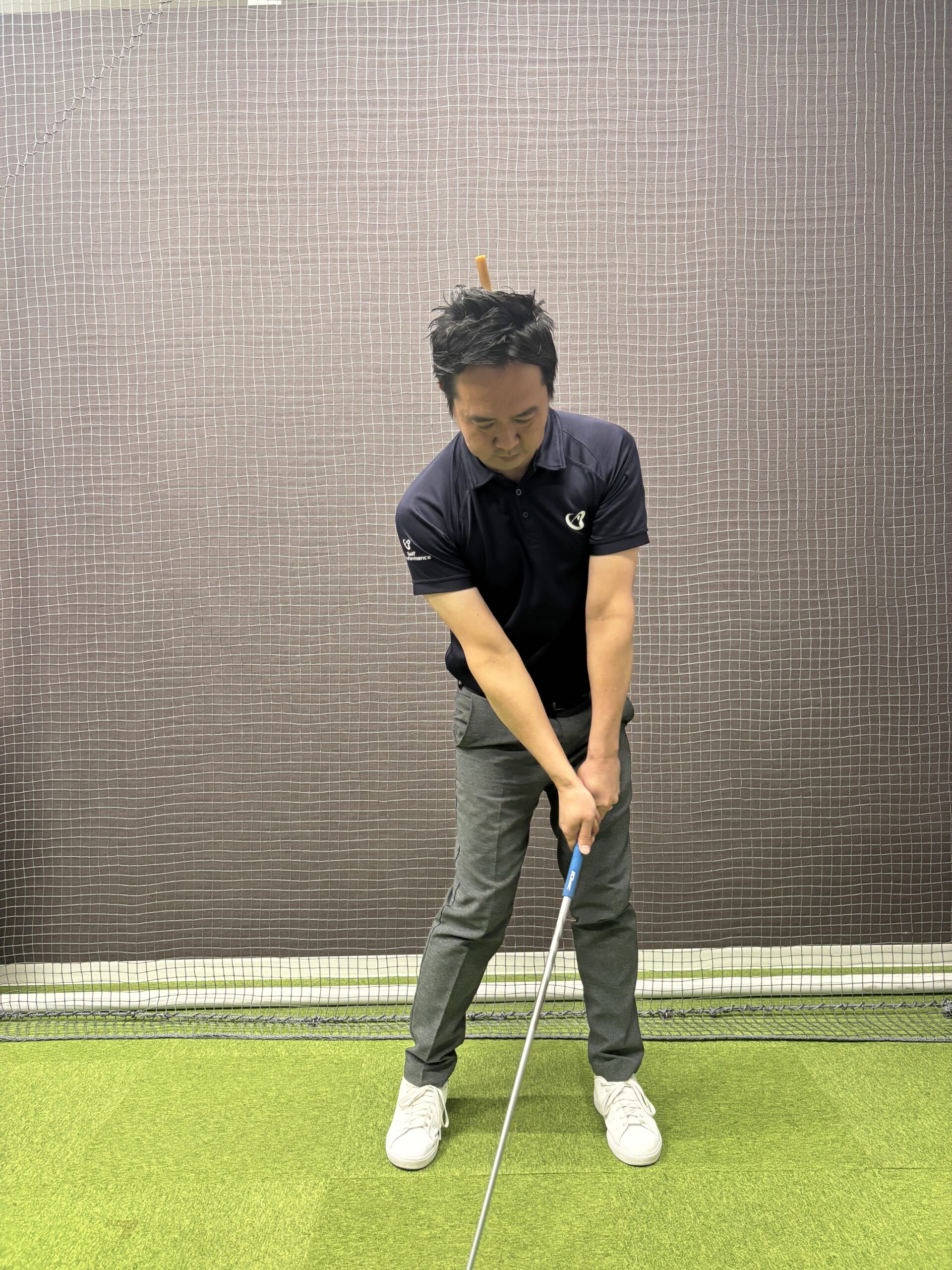 この状態で練習を続けても、クラブは外から入り、フェースが開き、スライスが止まりません。