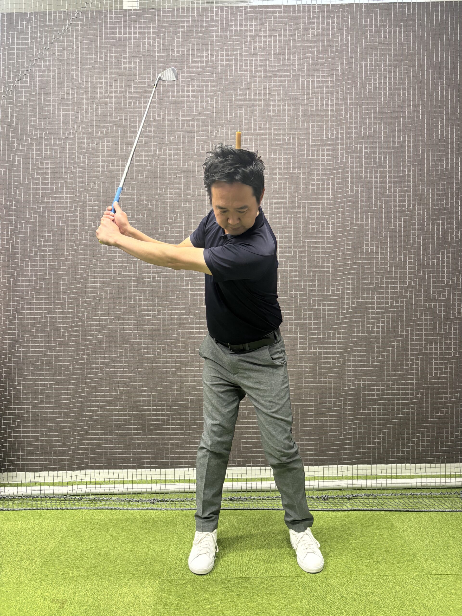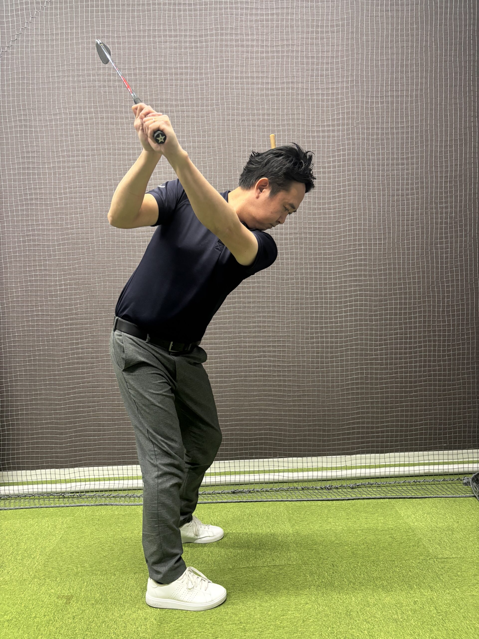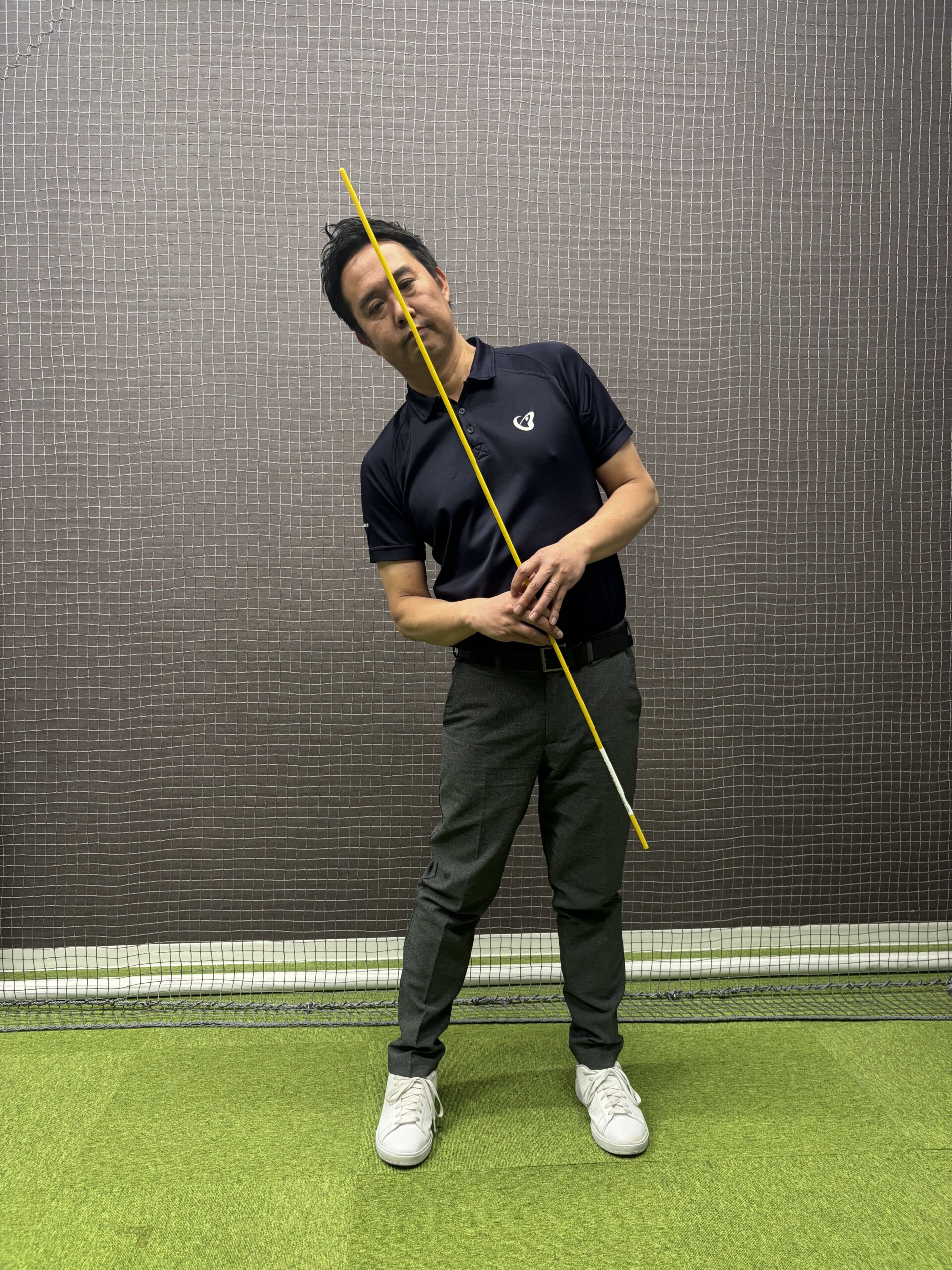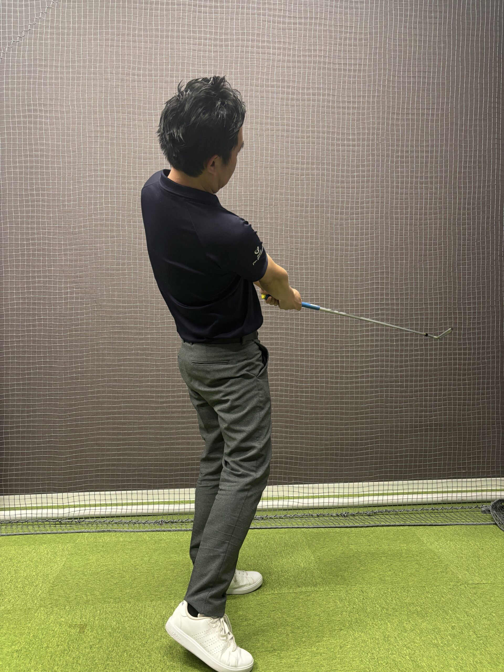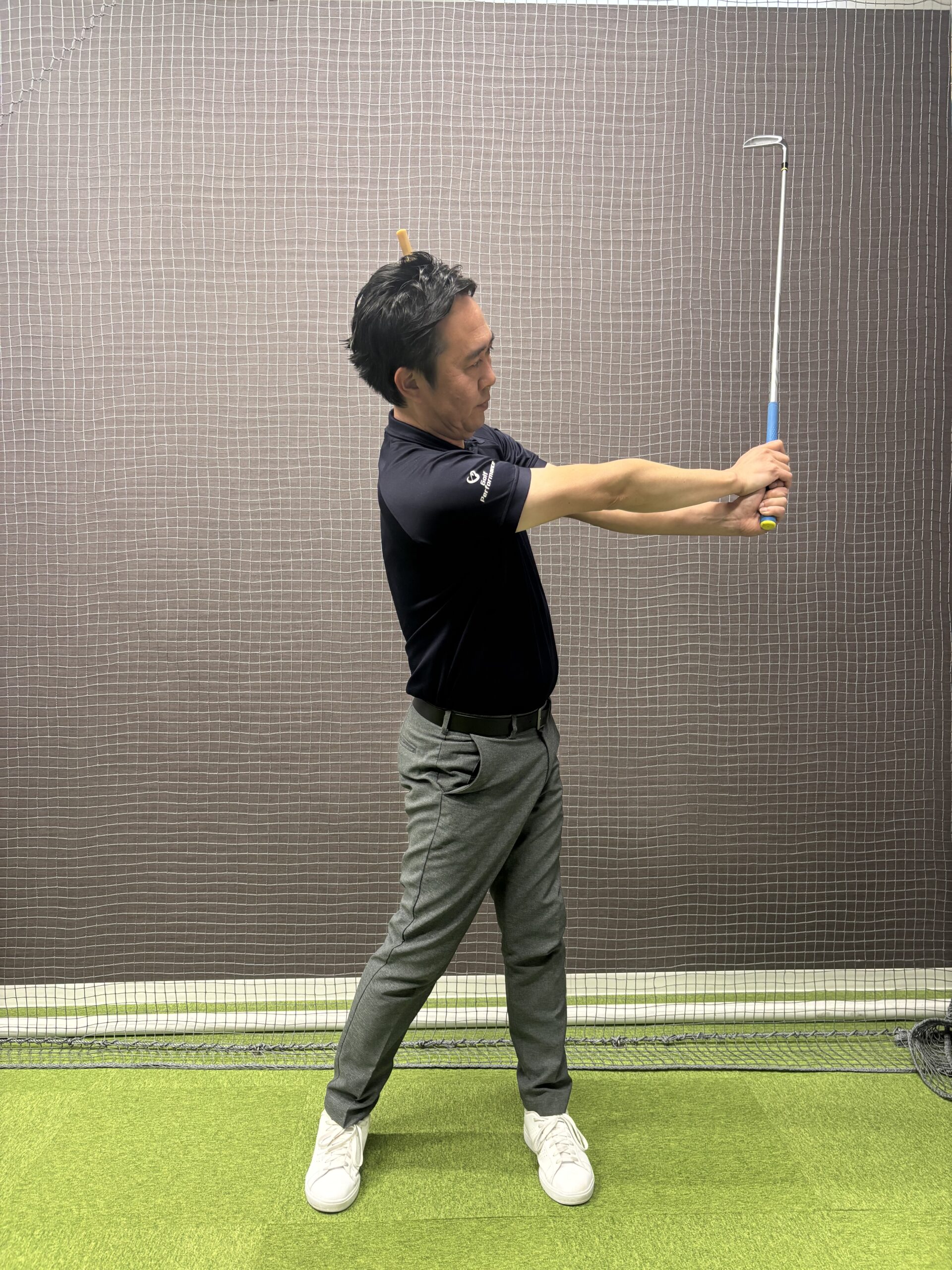 ティードリルを行う際は、必ず肩から肩の振り幅を意識しましょう。