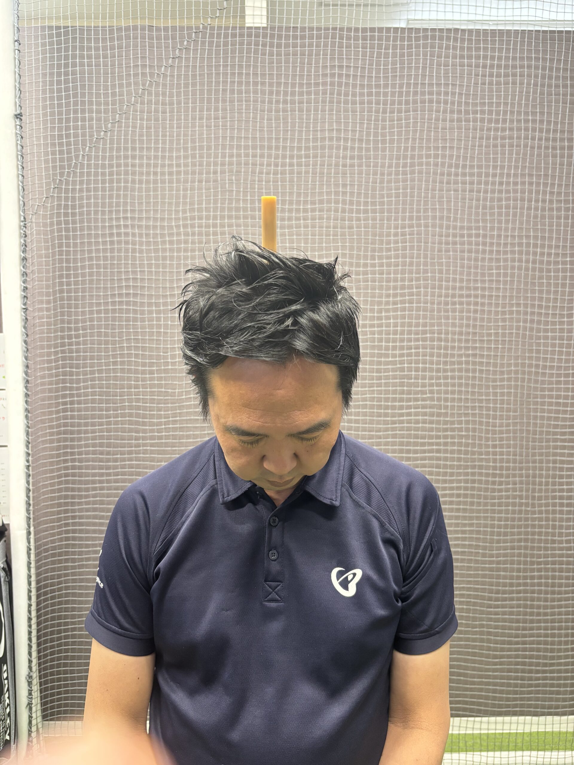 ティーを頭の上に乗せて(つむじの位置を目安に)