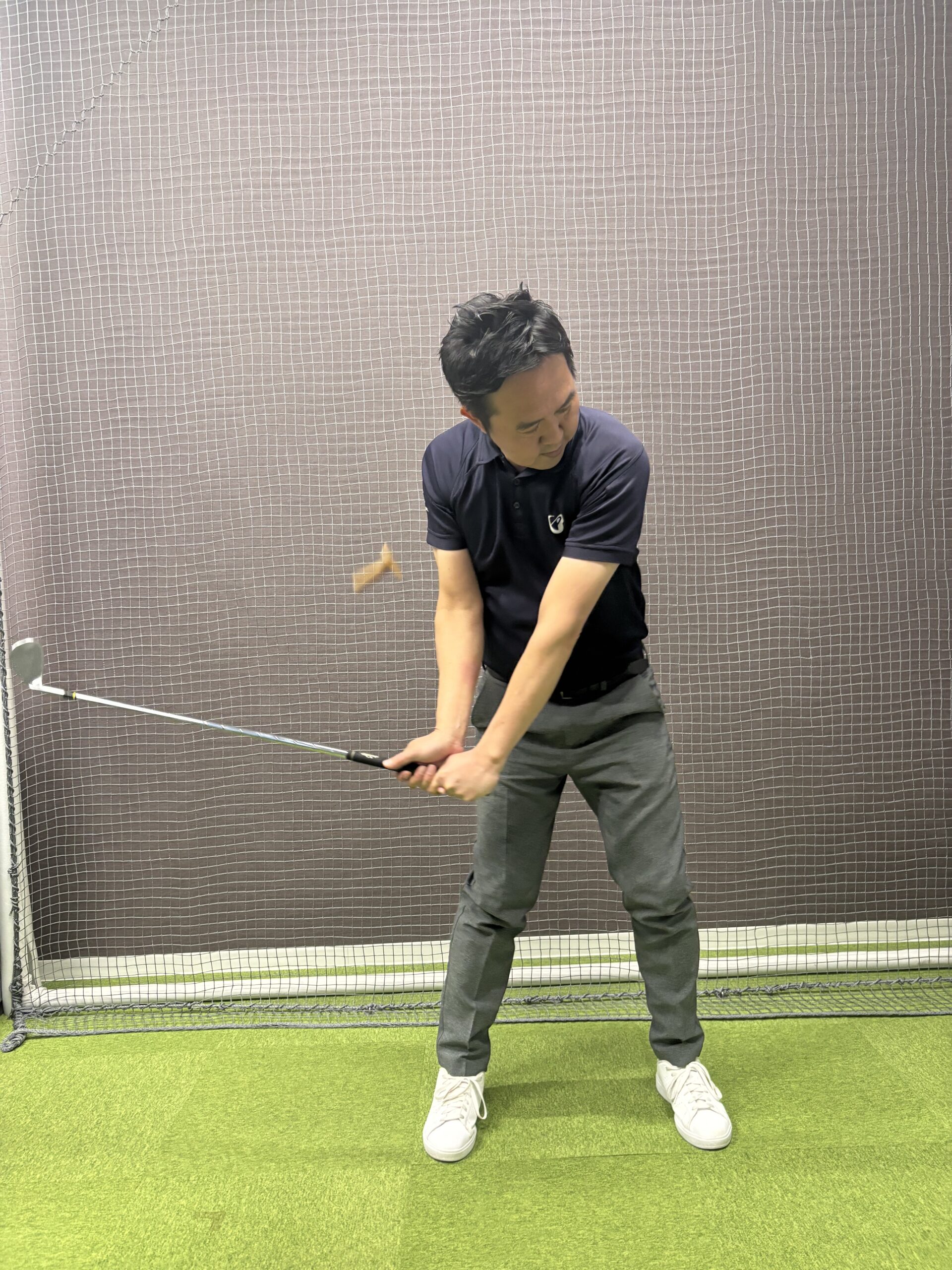 少しでもティーが落ちる様であれば軸ブレしているので落ちない体の動きを定着させる