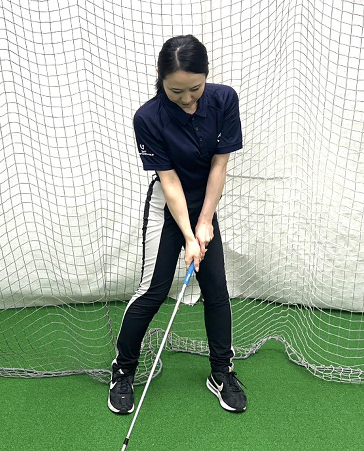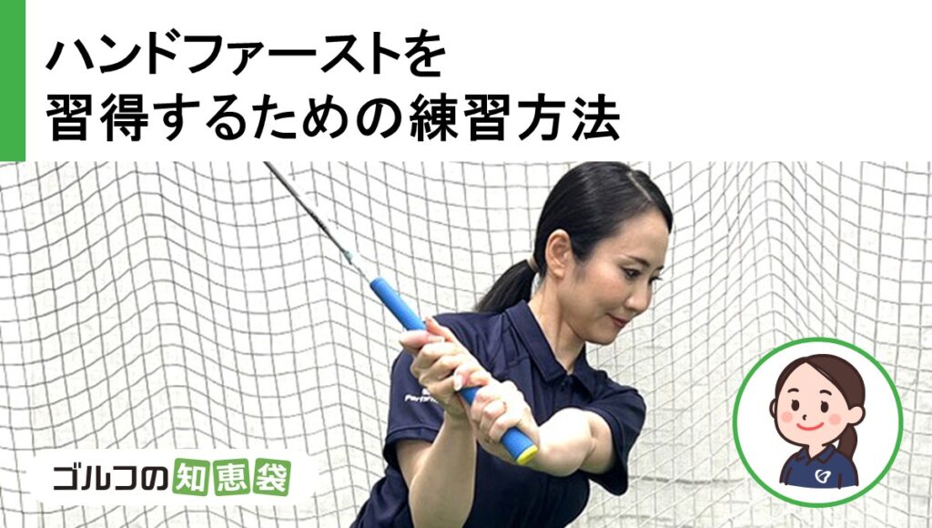 これらはすべて、スコア100切りに直結する要素です。多くの初心者が陥りがちなハンドレートを防ぐためにも、ハンドファーストの形を⾝につけることは極めて重要です。