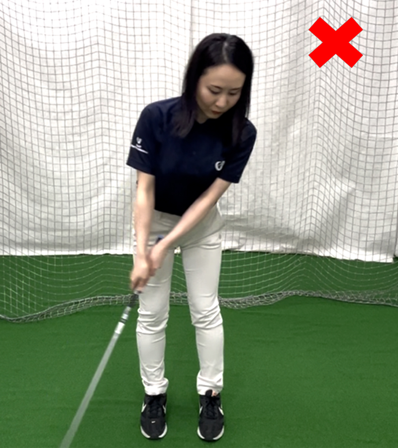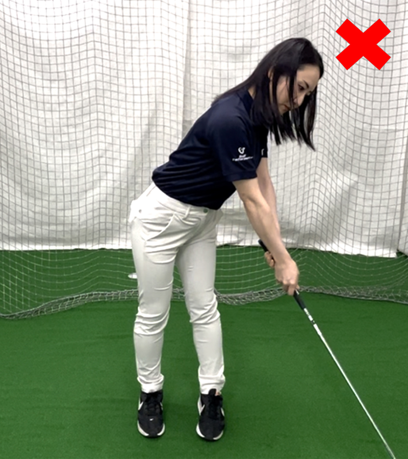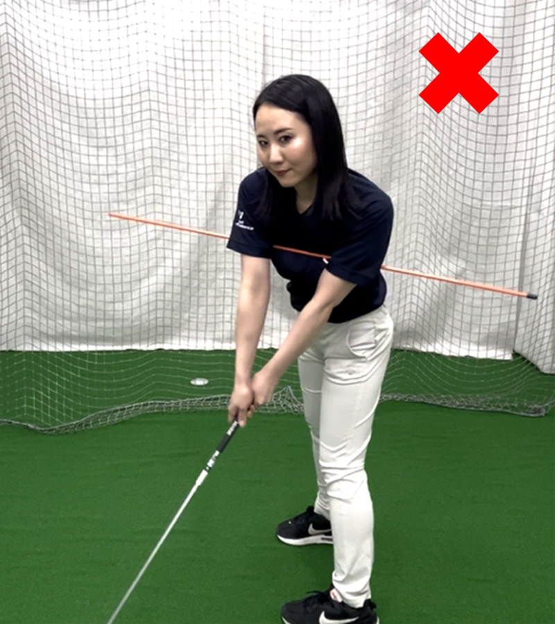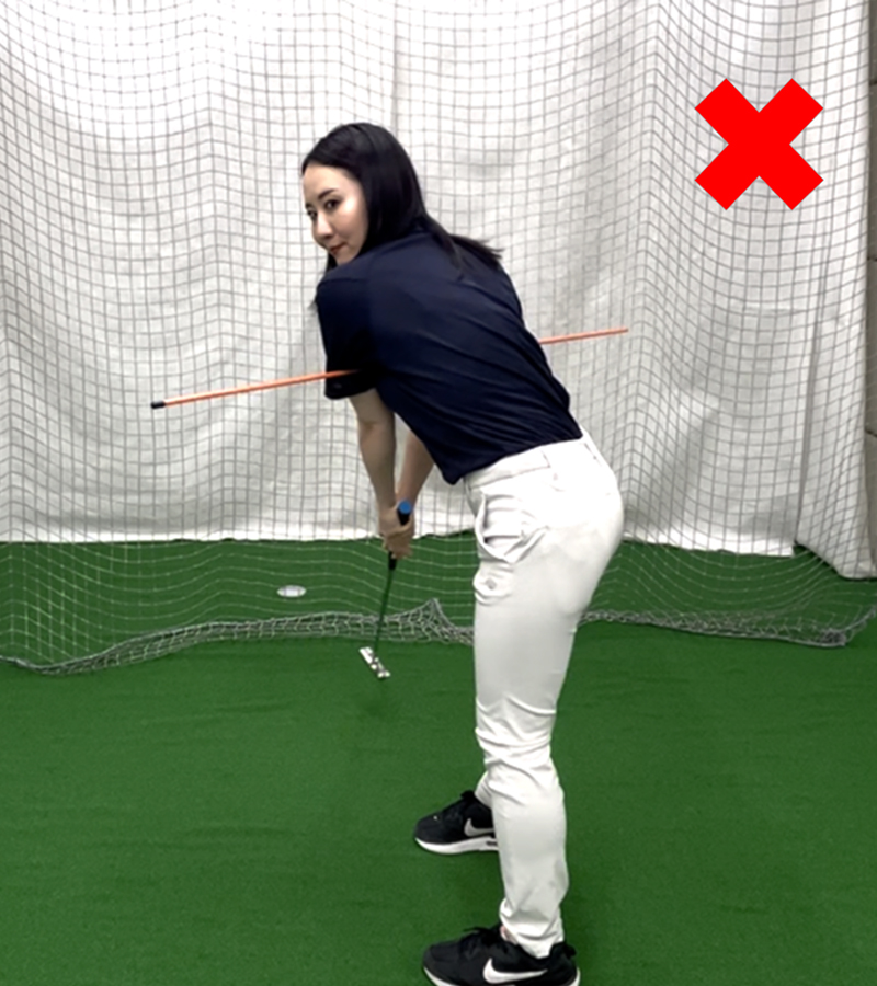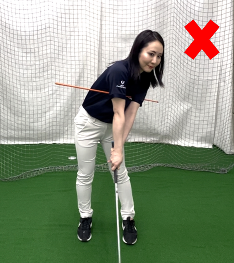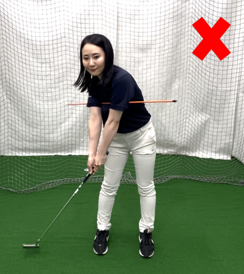 ✕ パターのストロークの際、上半身が突っ込んでいる状態