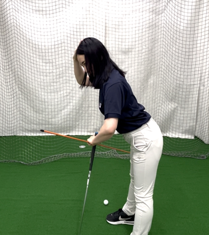 ✕ パターのストロークの際、頭が突っ込んでいる状態