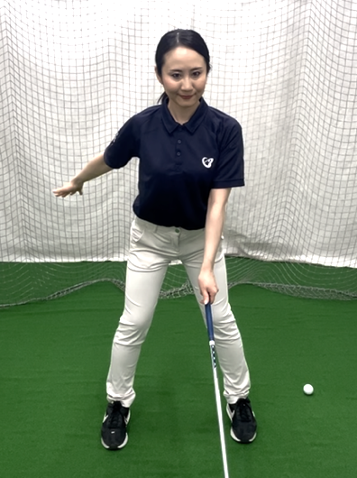1.両手でアドレスを取り、右手を放して左手1本でクラブを持つ