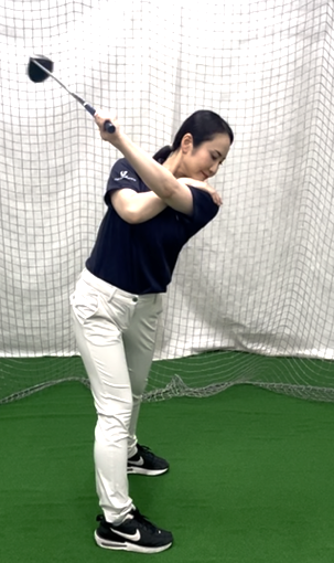 初心者はバックスイングで肩の回転不足になり、腕だけでクラブを上げてしまう傾向があります。