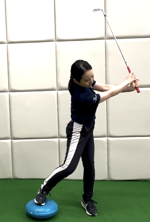 ・スクールやレッスンでは「左足一本でフィニッシュ」を目標にする練習が行われます。