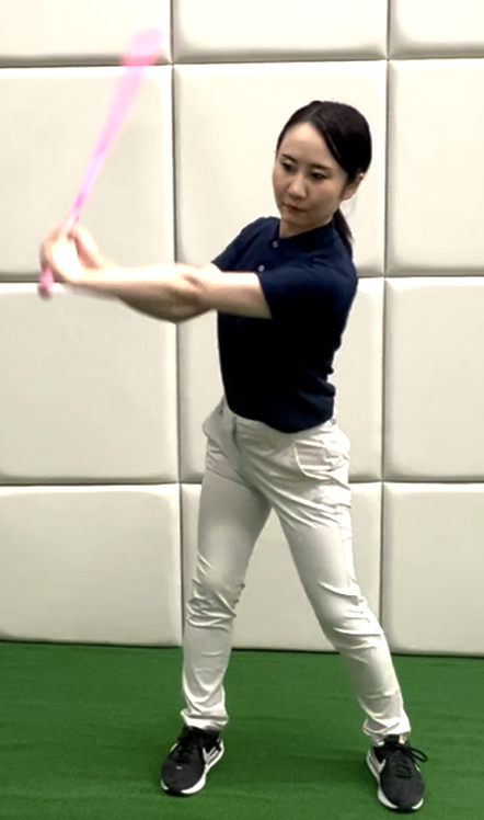 3.」左側で「ビュッ」という音が鳴るようにスイング。