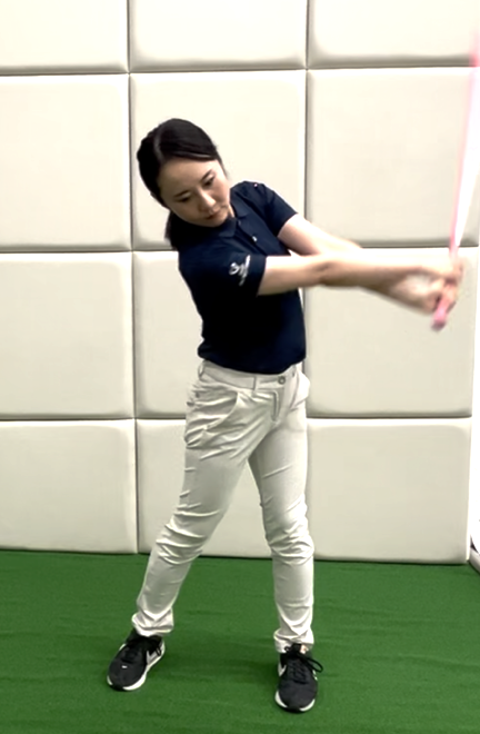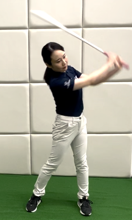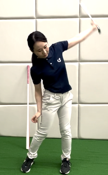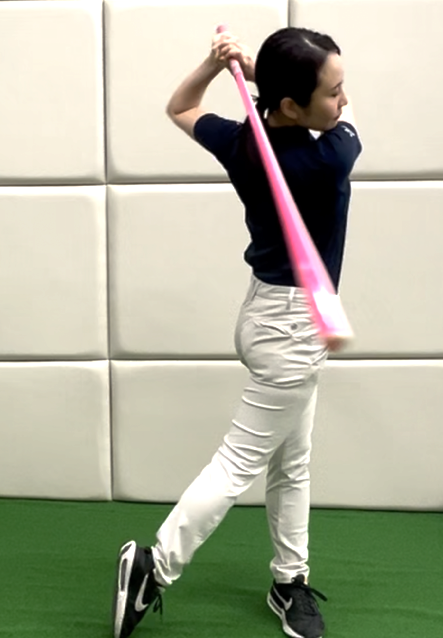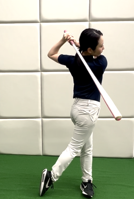 ・フォロースルーからフィニッシュにかけて、バランスを崩さず振り続ける。