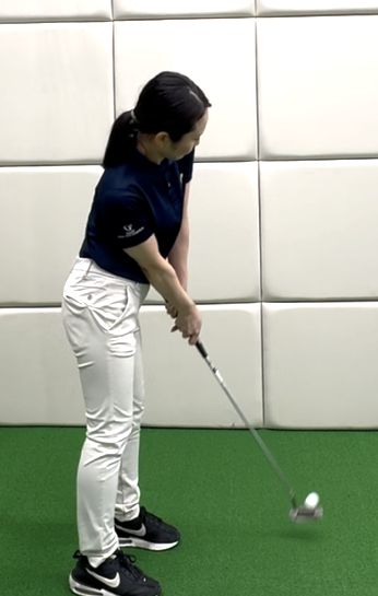 この状態でストロークを繰り返すと、肩のラインが自然にスクエアに戻り、打ち出し方向が真っすぐになります。